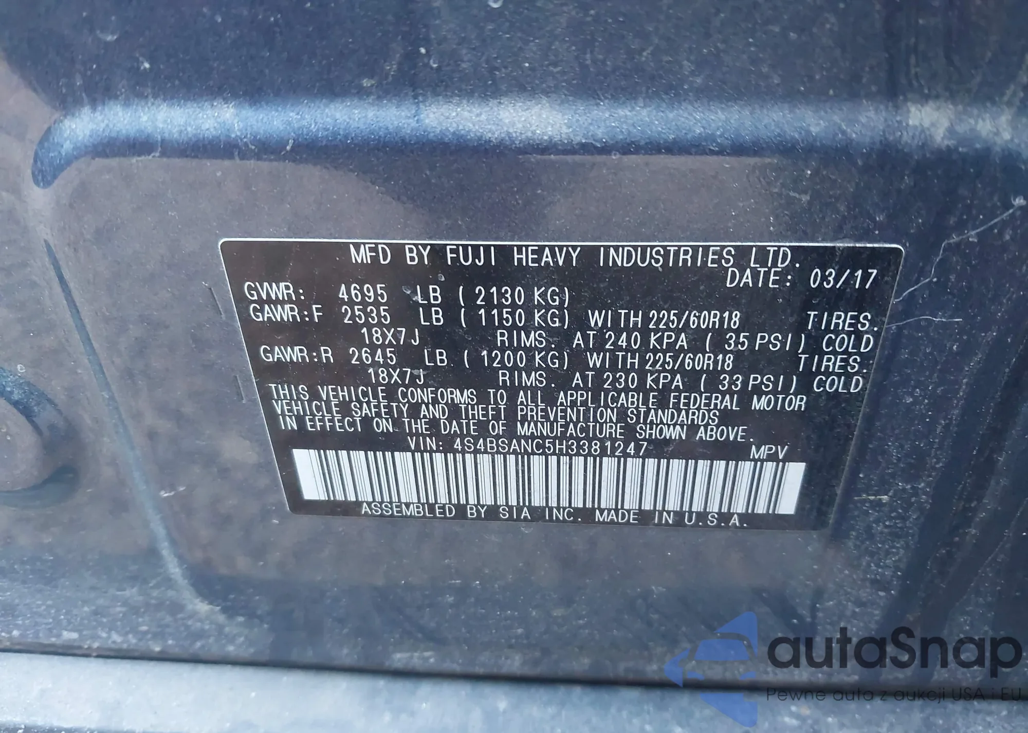 VIN: 4S4BSANC5H3381247