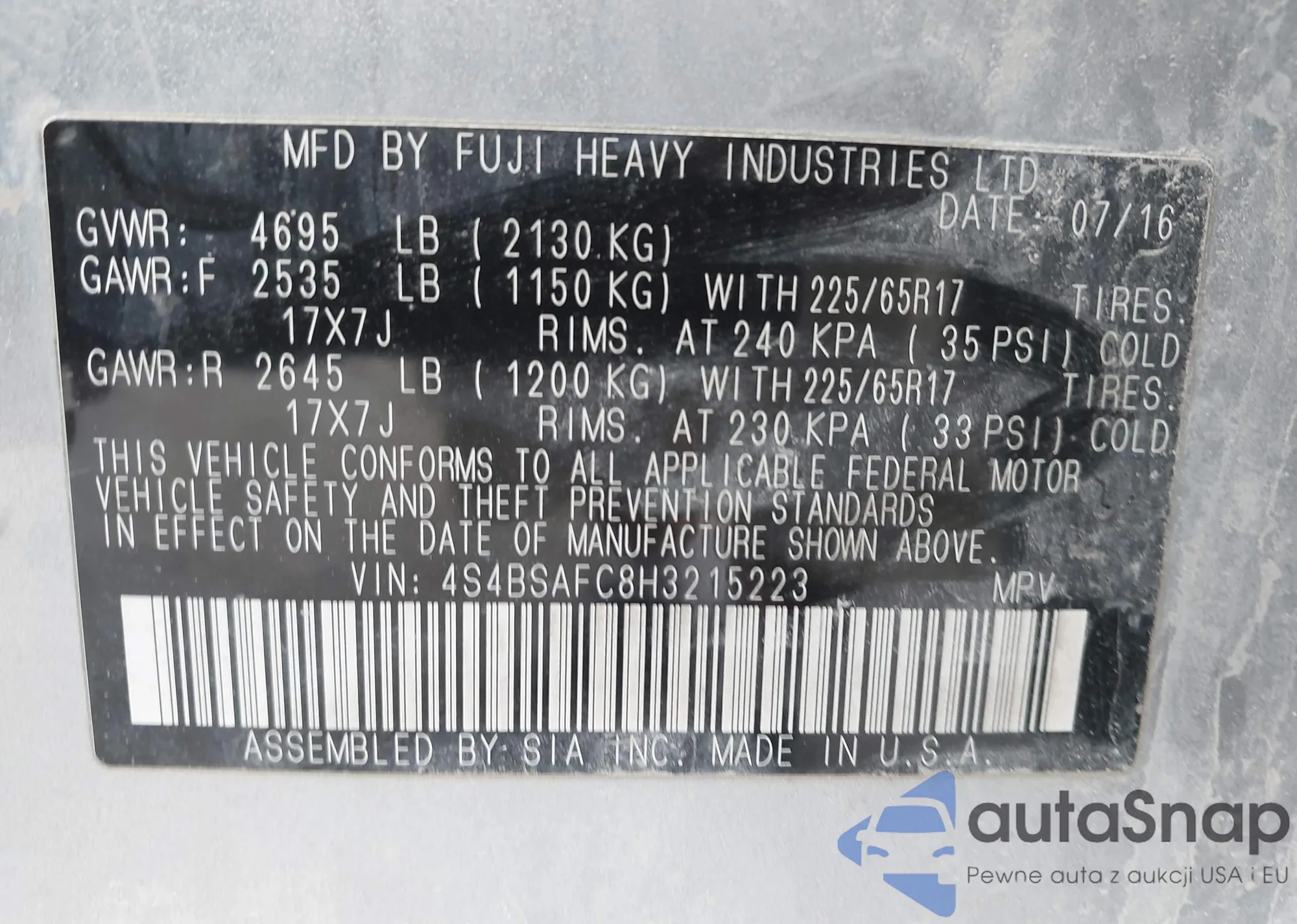 VIN: 4S4BSAFC8H3215223