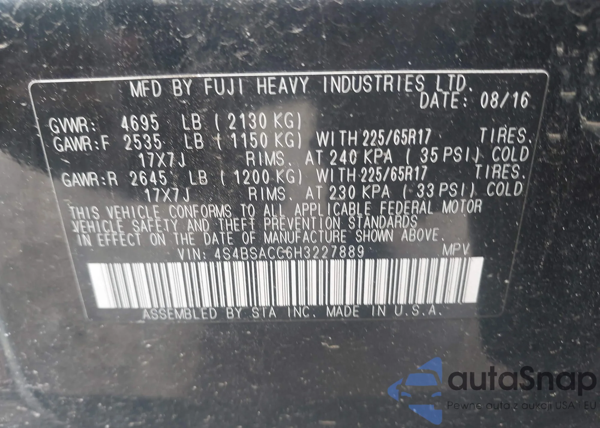 VIN: 4S4BSACC6H3227889
