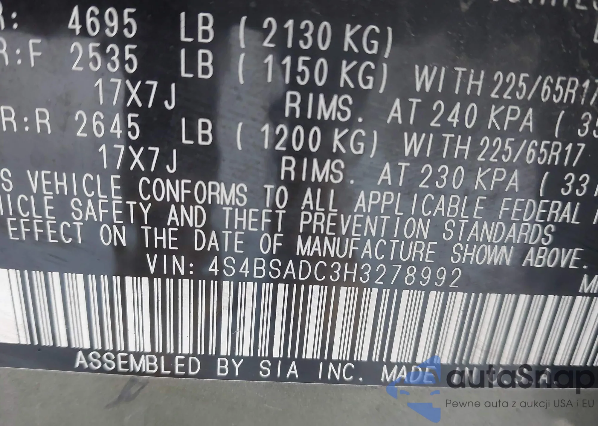 VIN: 4S4BSADC3H3278992