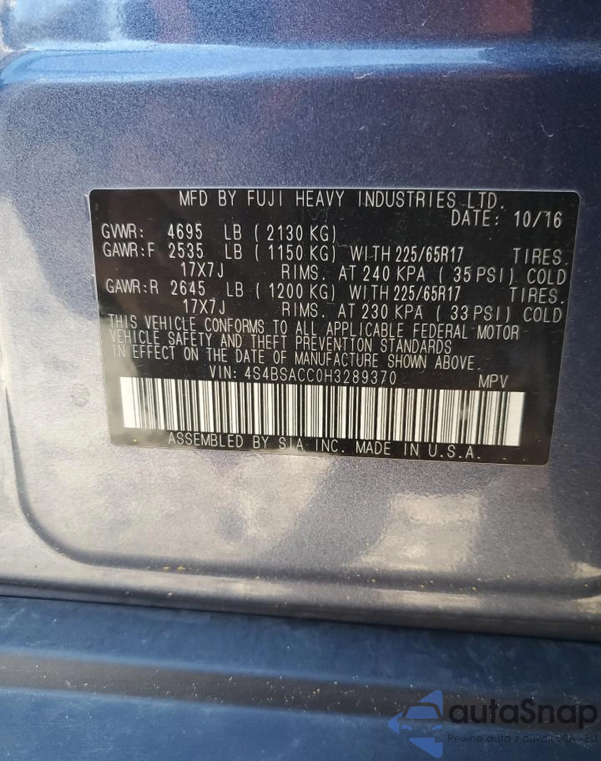 VIN: 4S4BSACC0H3289370
