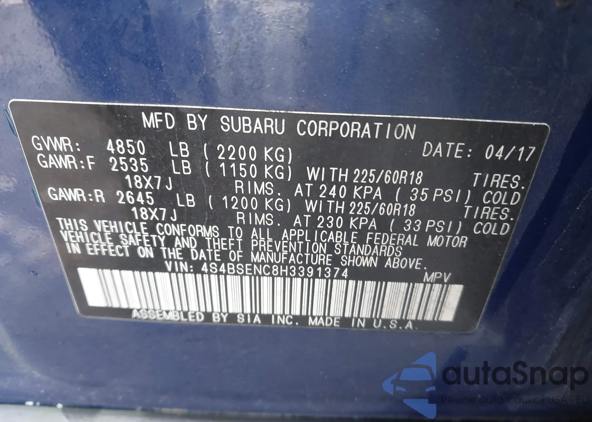 VIN: 4S4BSENC8H3391374