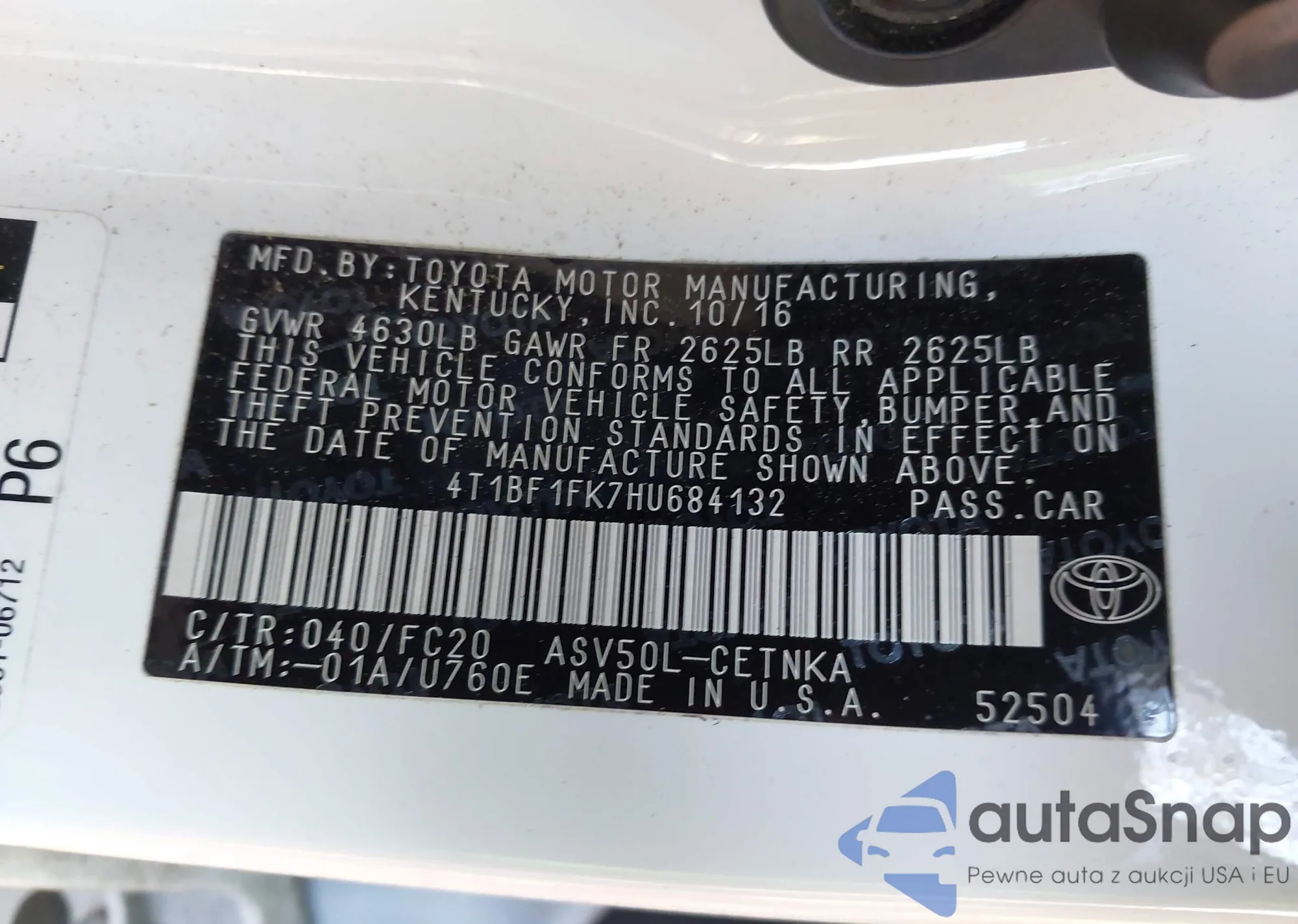 VIN: 4T1BF1FK7HU684132