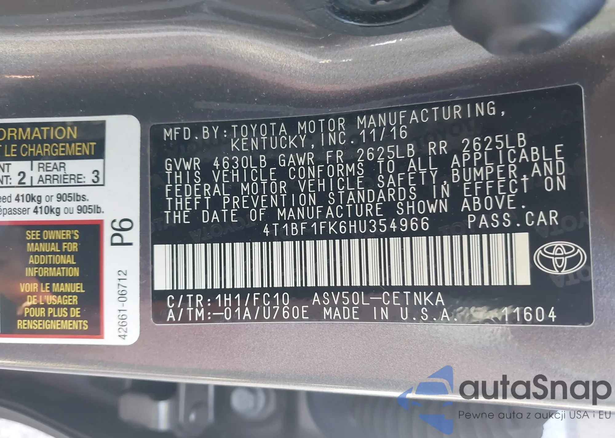 VIN: 4T1BF1FK6HU354966
