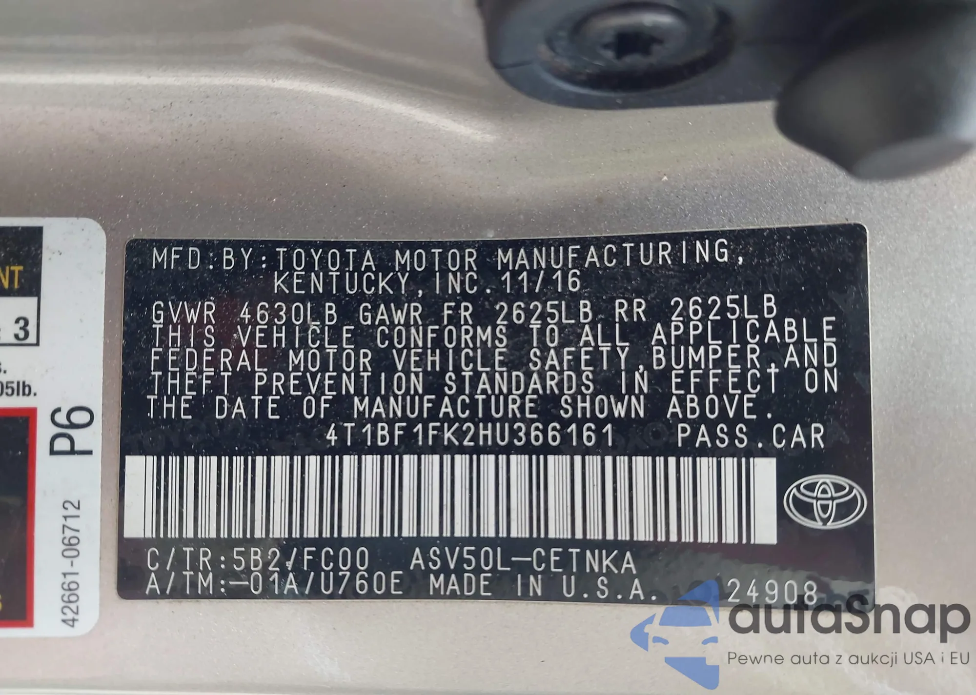 VIN: 4T1BF1FK2HU366161