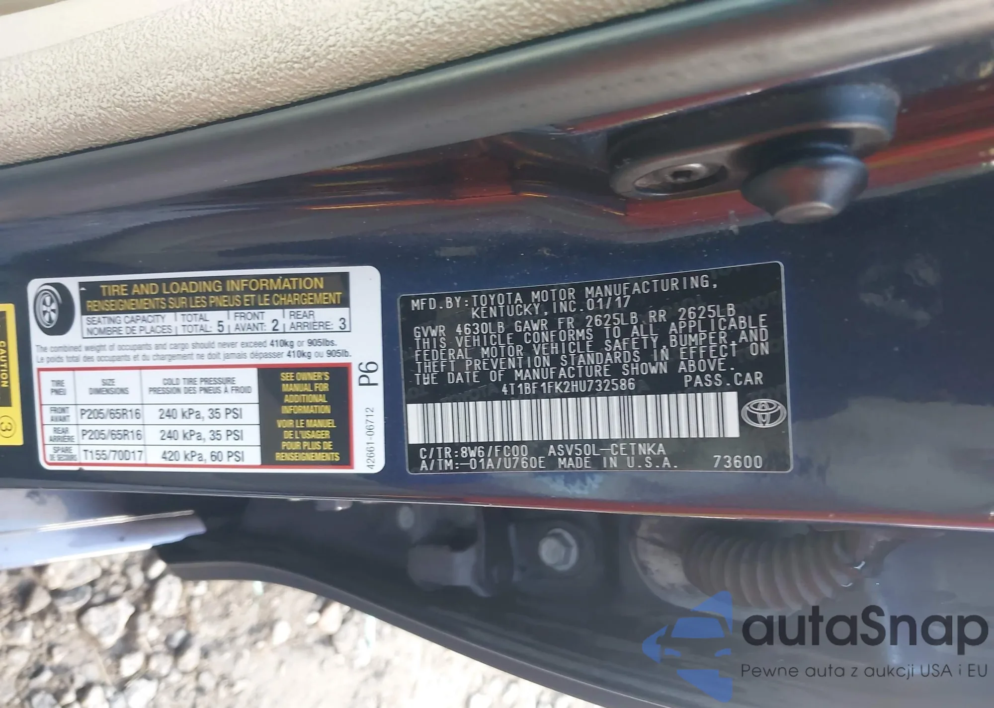 • VIN: 4T1BF1FK2HU732586