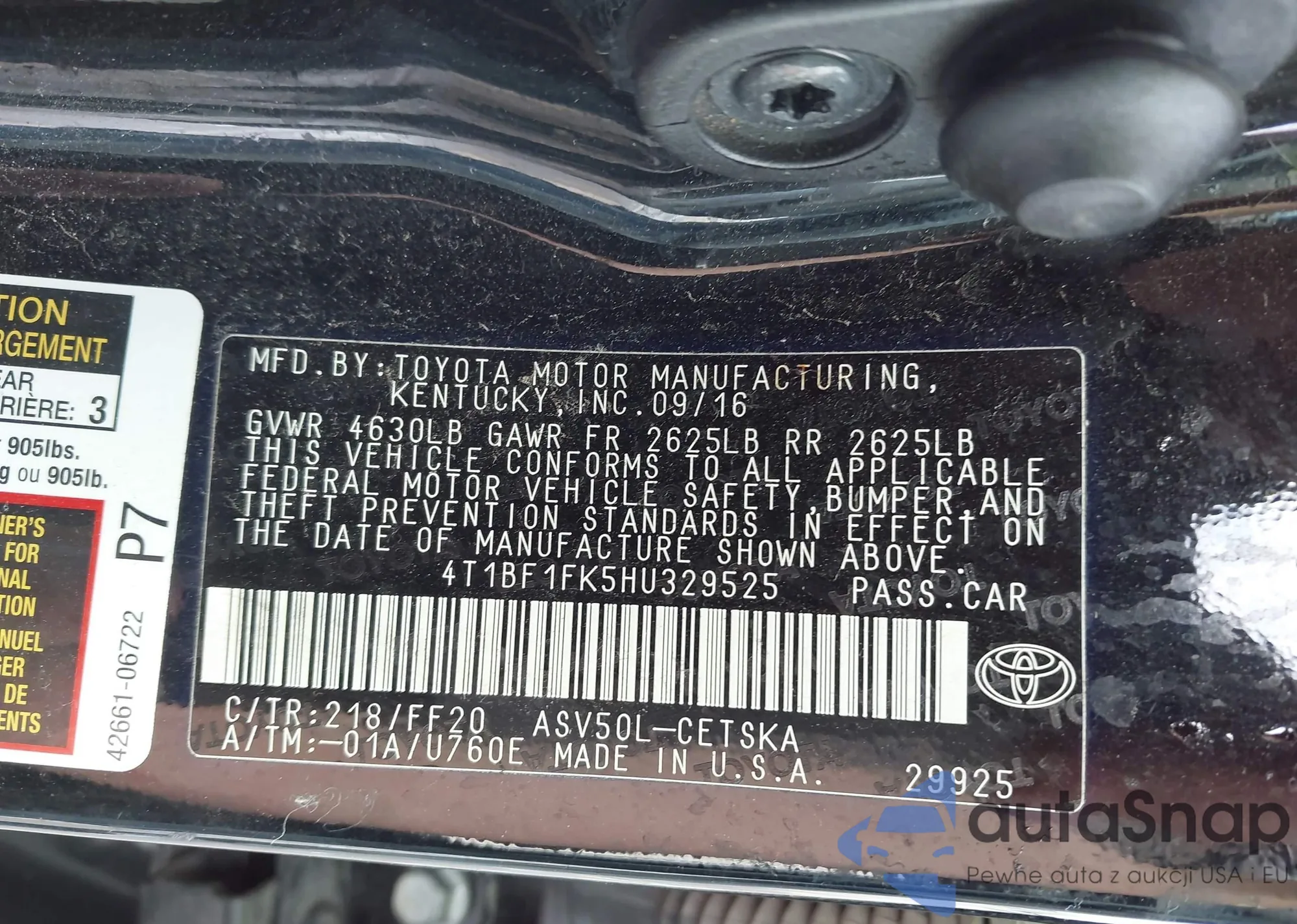 VIN: 4T1BF1FK5HU329525