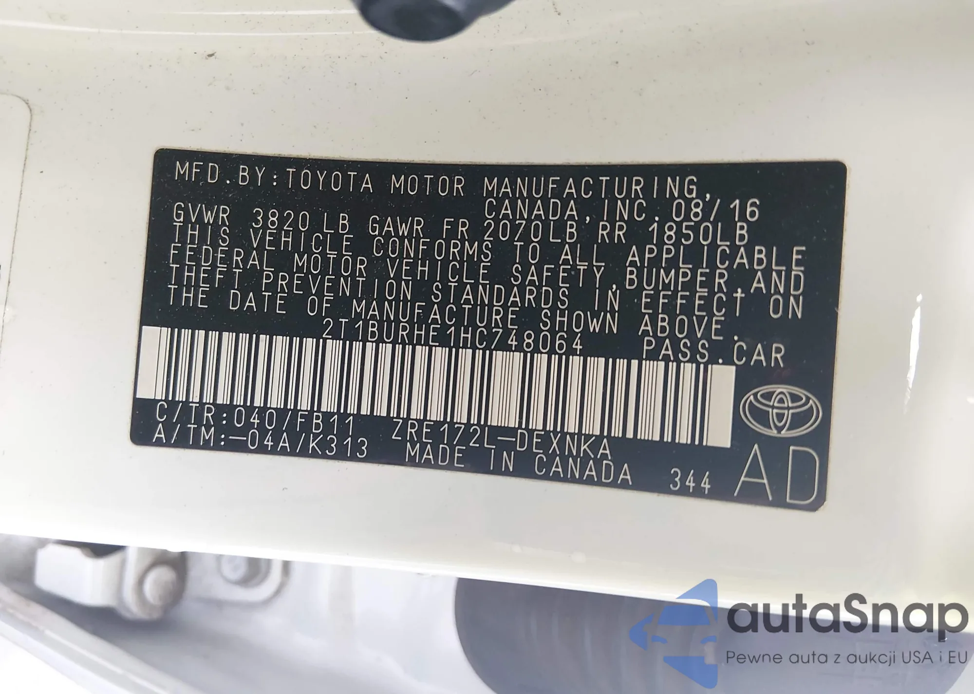 VIN: 2T1BURHE1HC748064