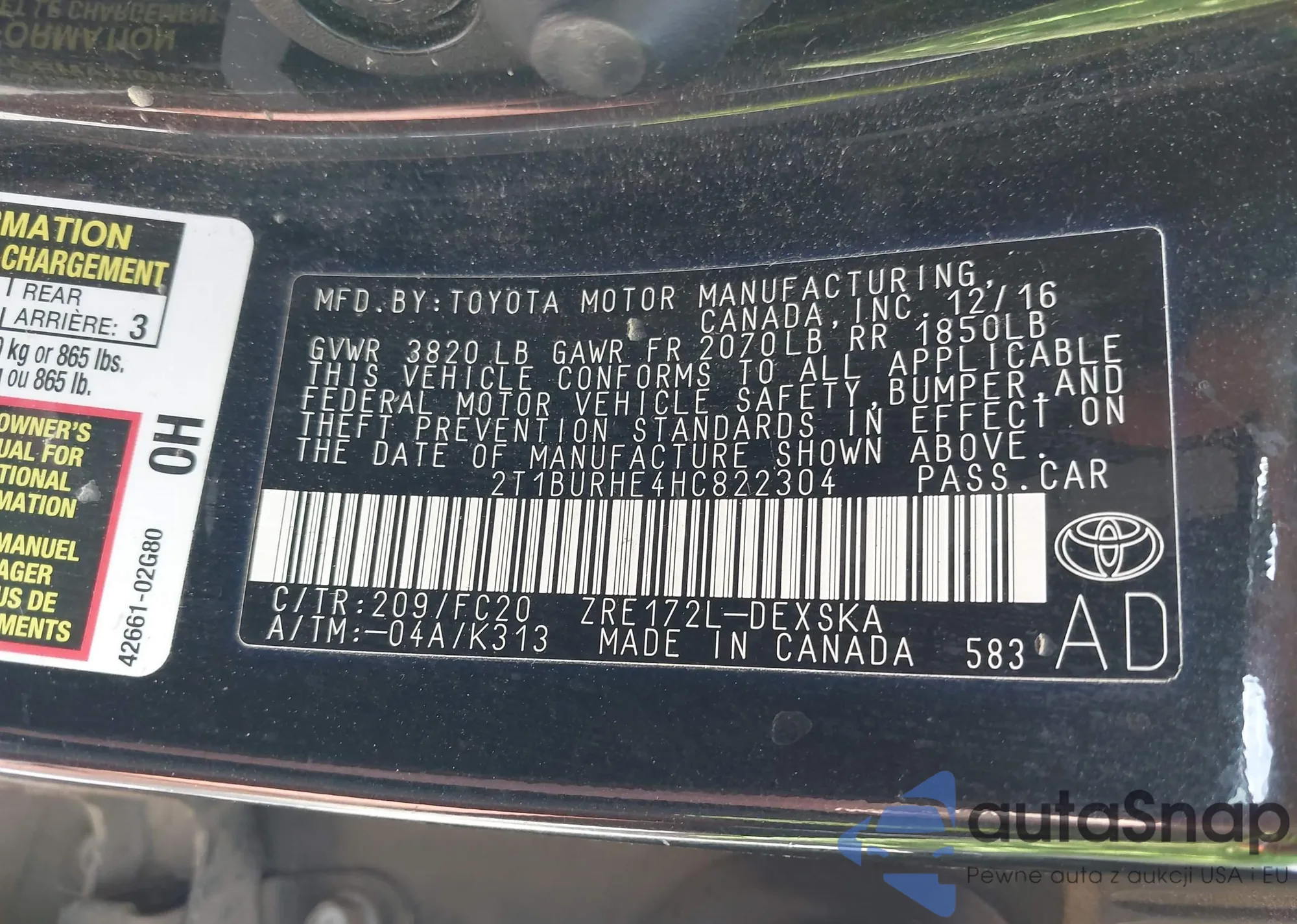 VIN: 2T1BURHE4HC822304