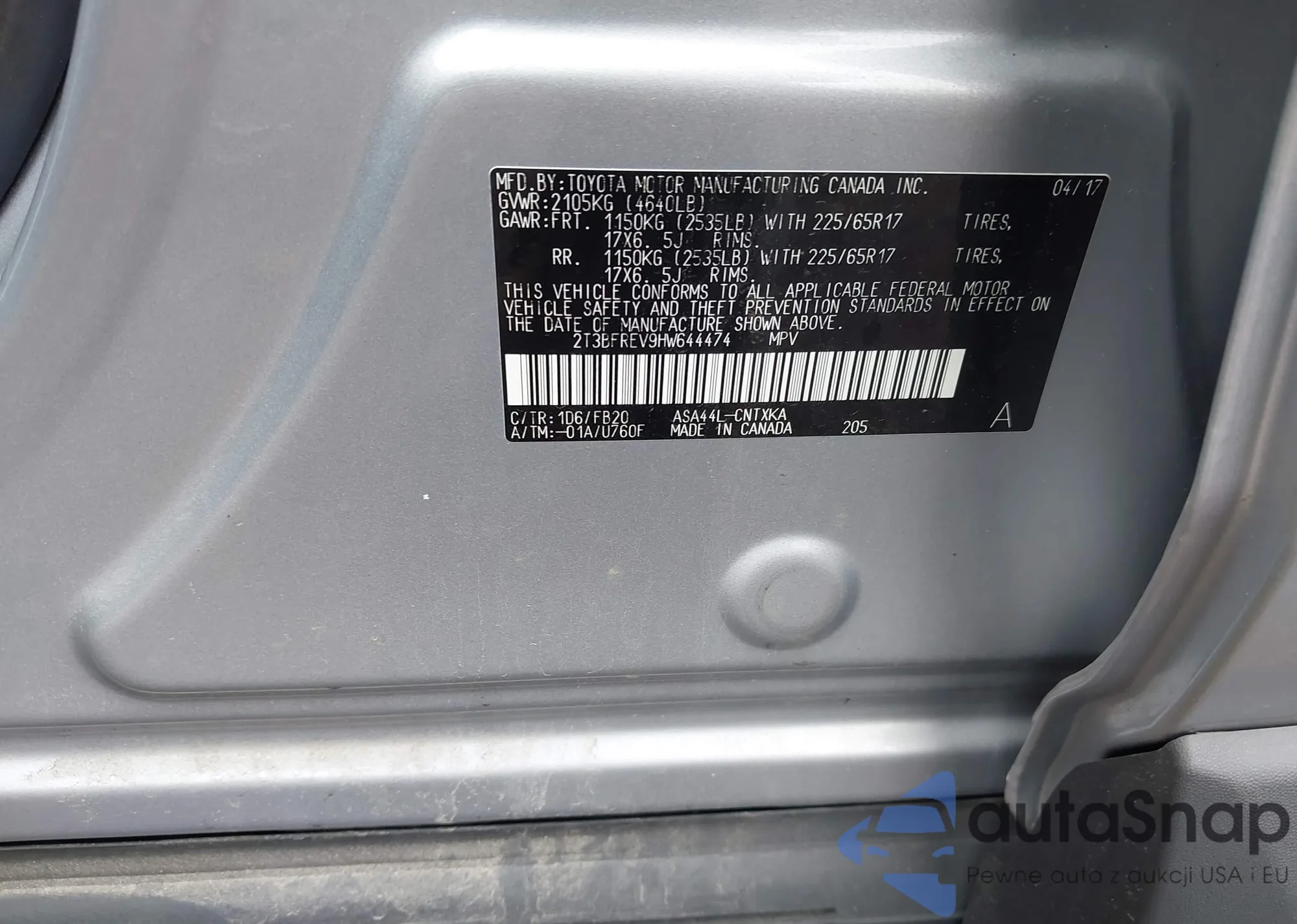 VIN: 2T3BFREV9HW644474
