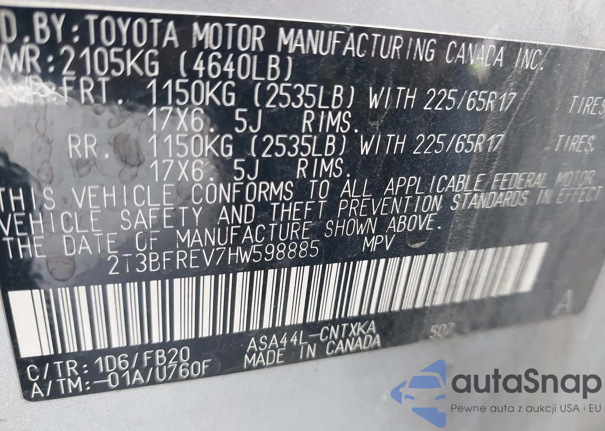 VIN: 2T3BFREV7HW598885