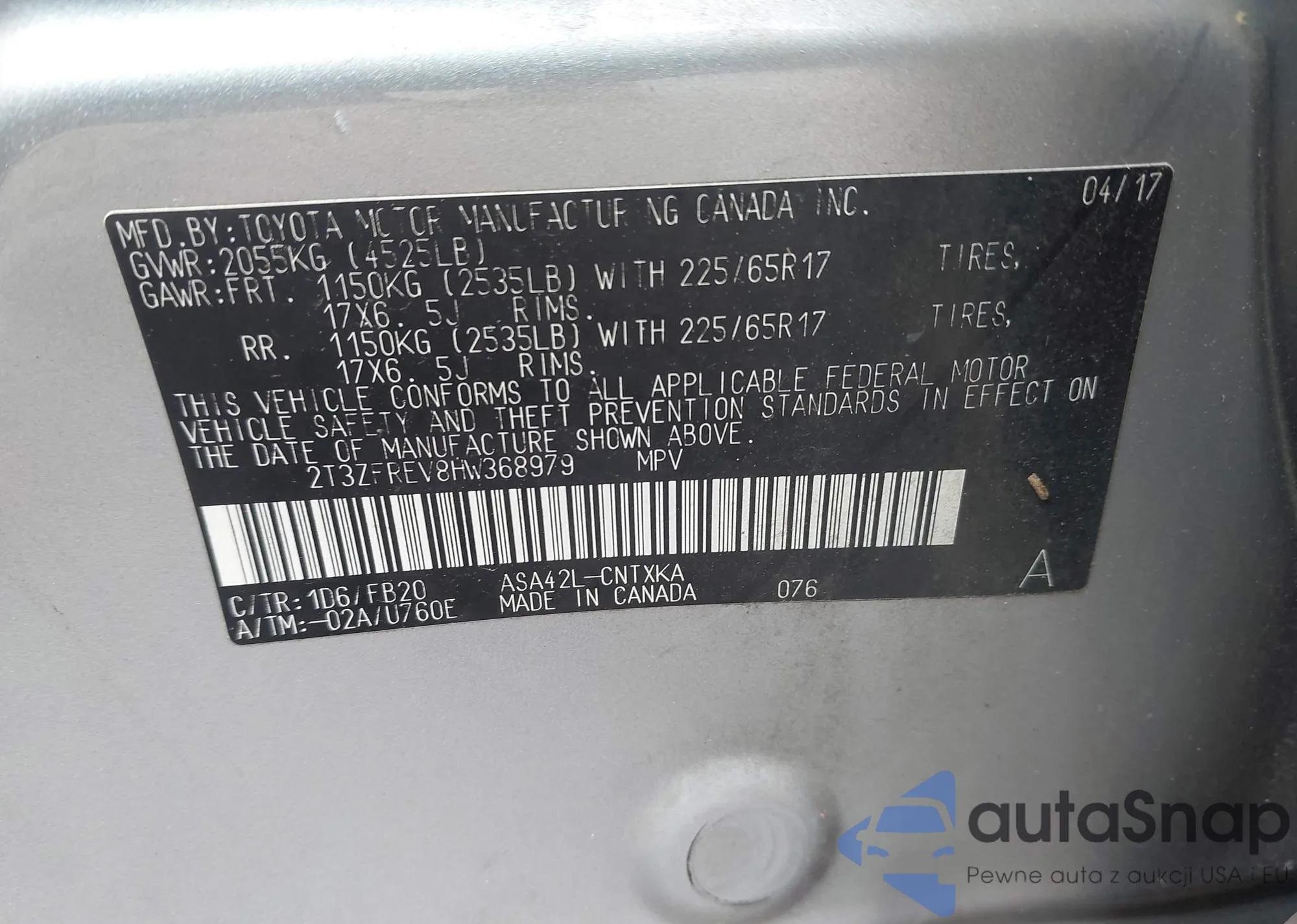 VIN: 2T3ZFREV8HW368979