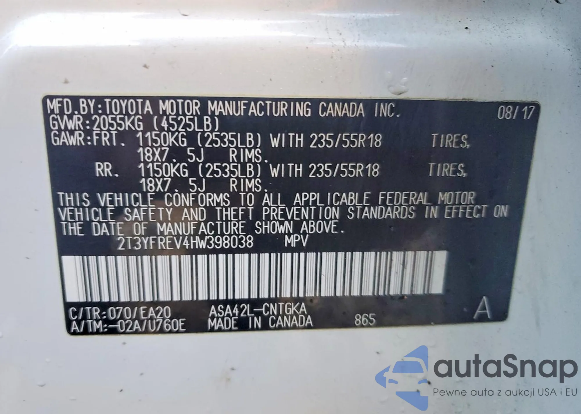 • VIN: 2T3YFREV4HW398038