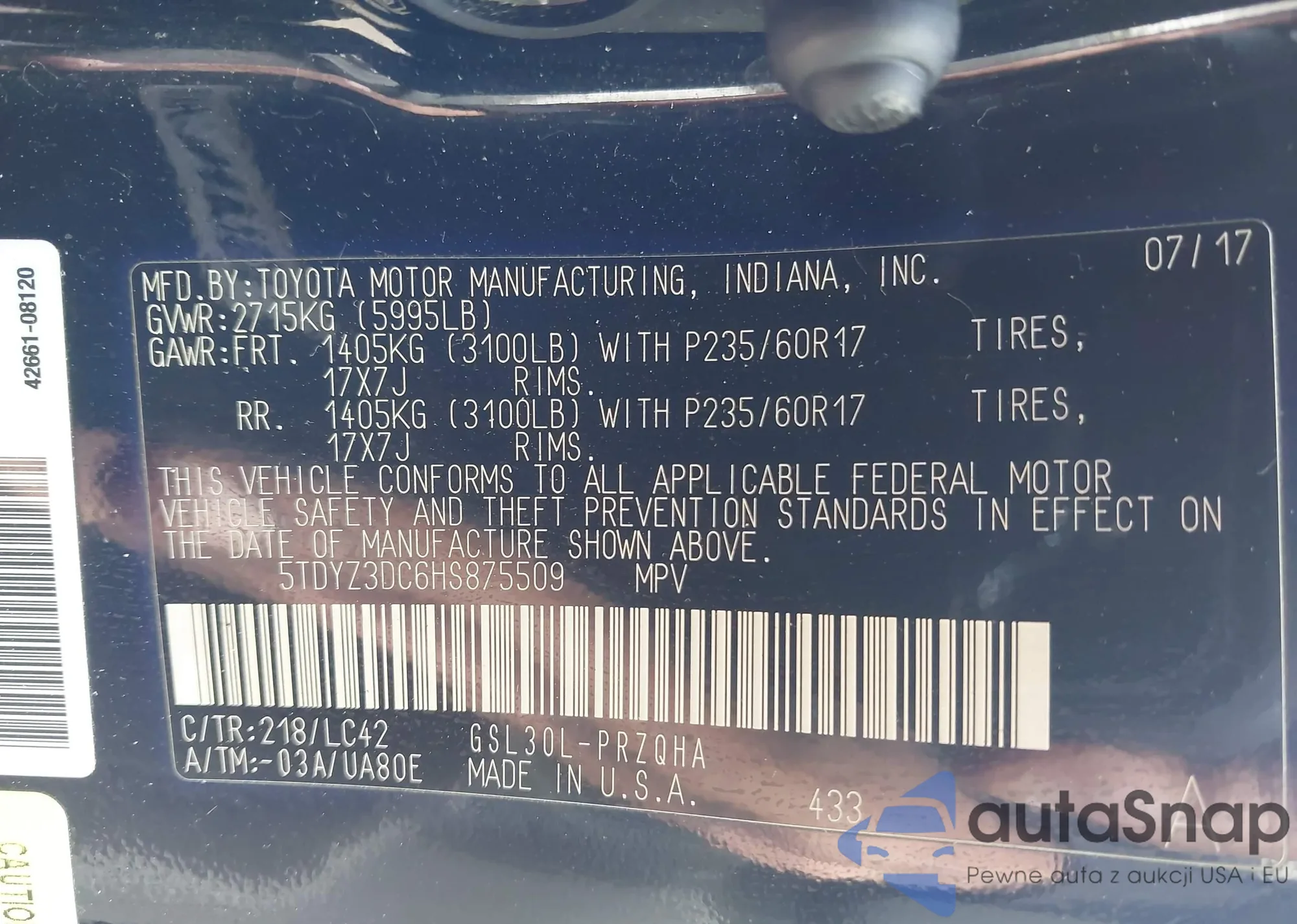 VIN: 5TDYZ3DC6HS875509