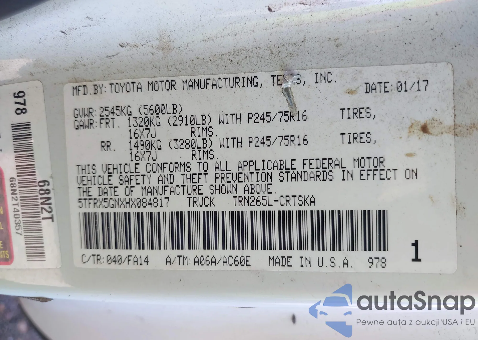 VIN: 5TFRX5GNXHX084817