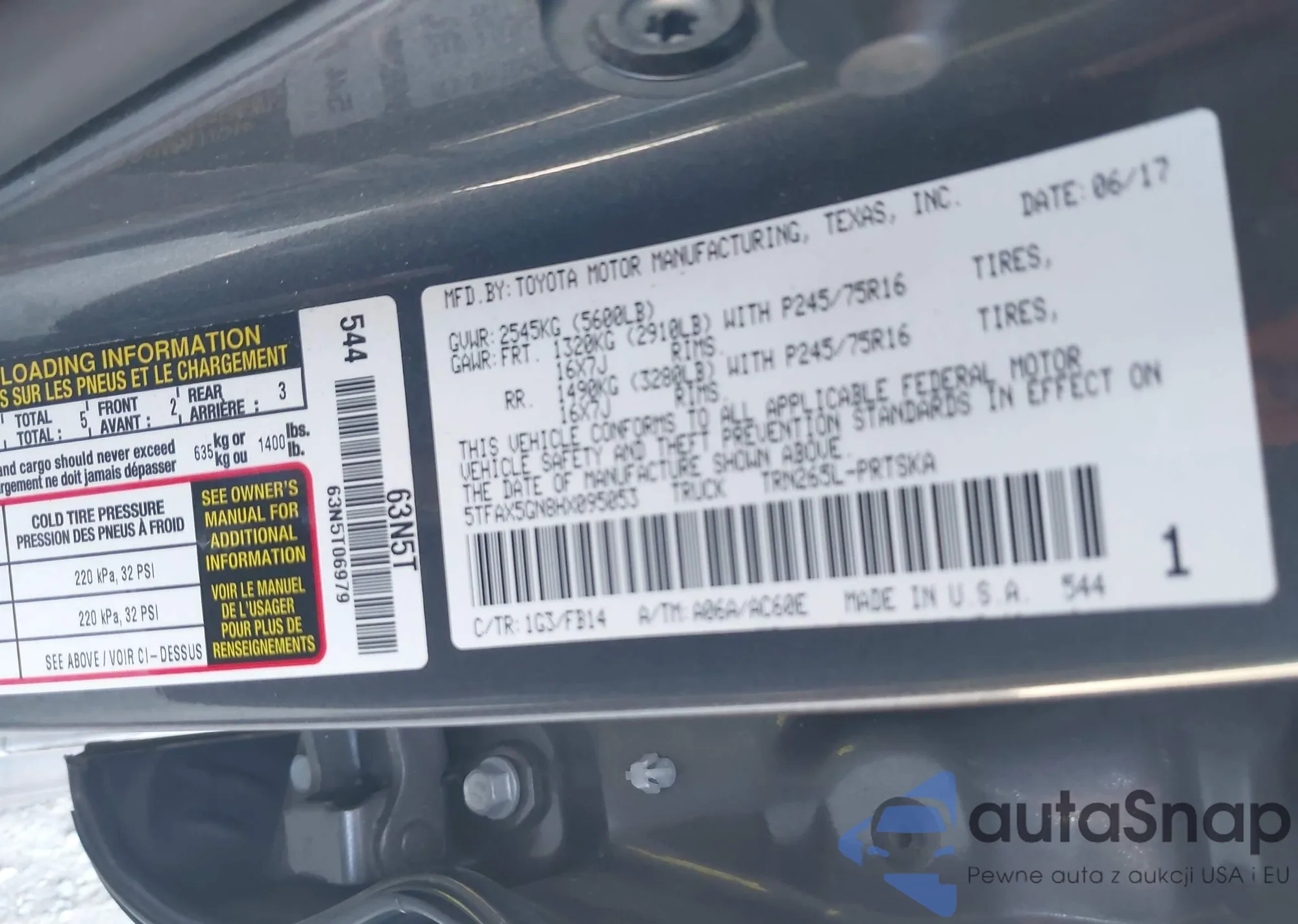 VIN: 5TFAX5GN8HX095053