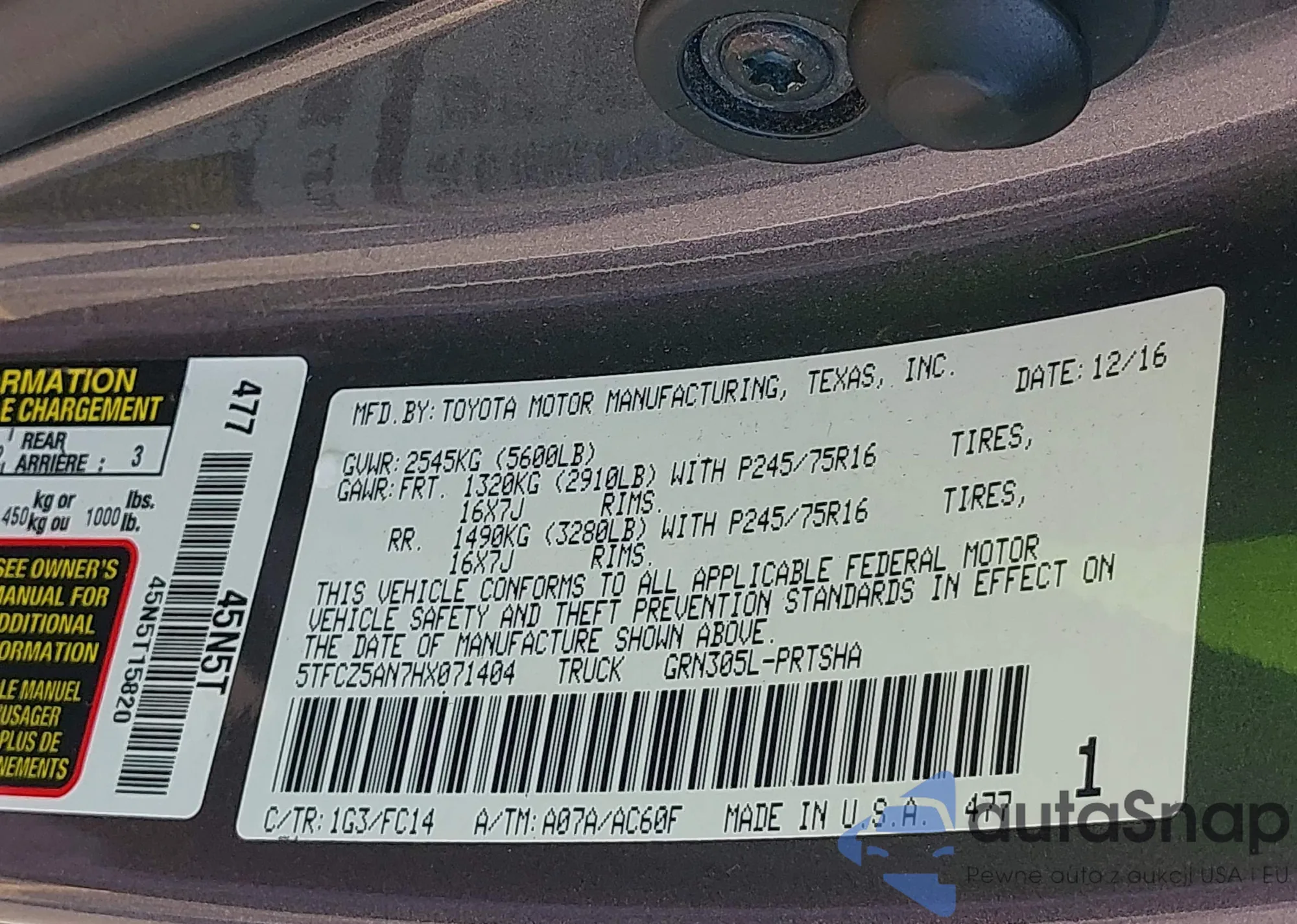 VIN: 5TFCZ5AN7HX071404