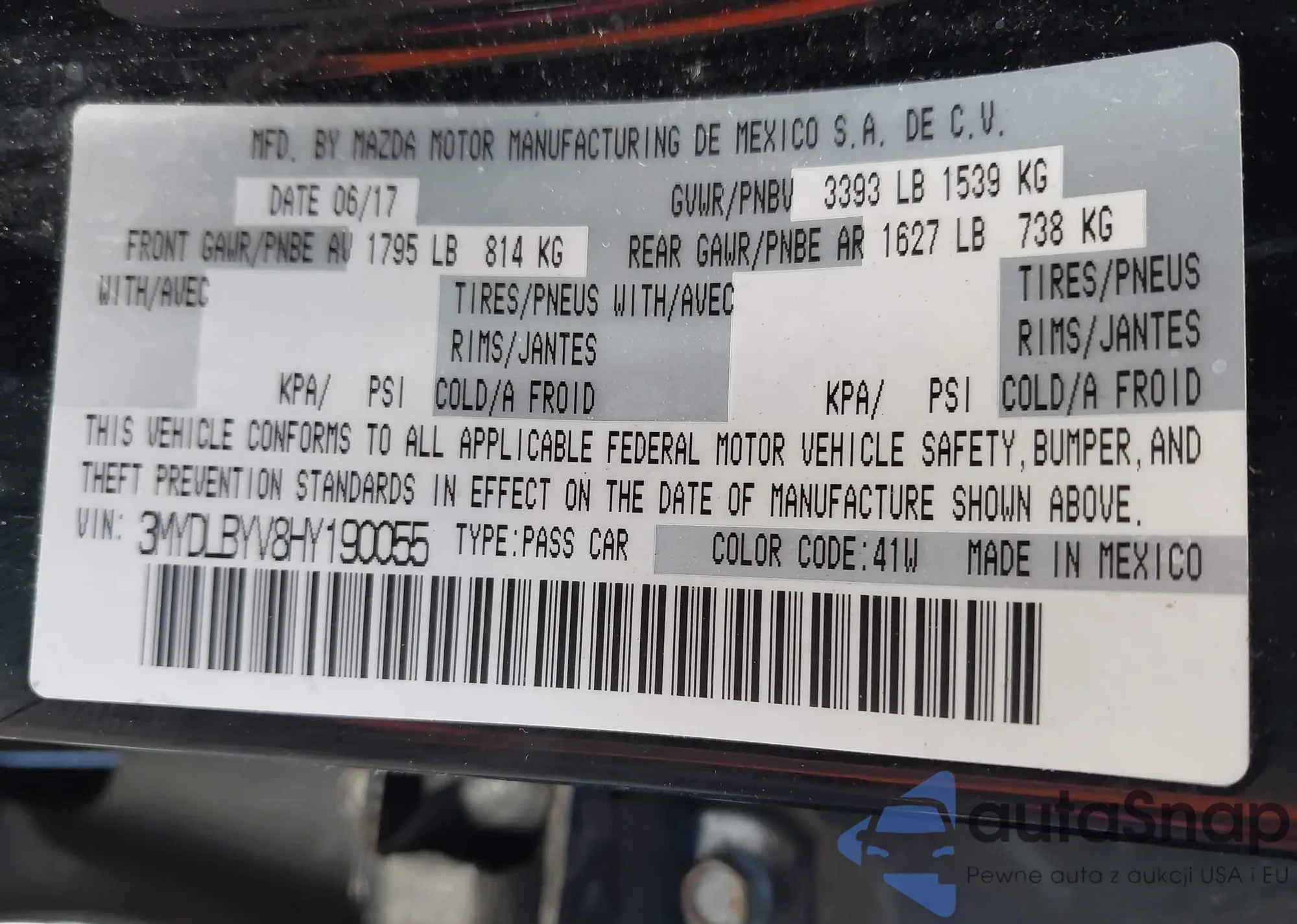 VIN: 3MYDLBYV8HY190055