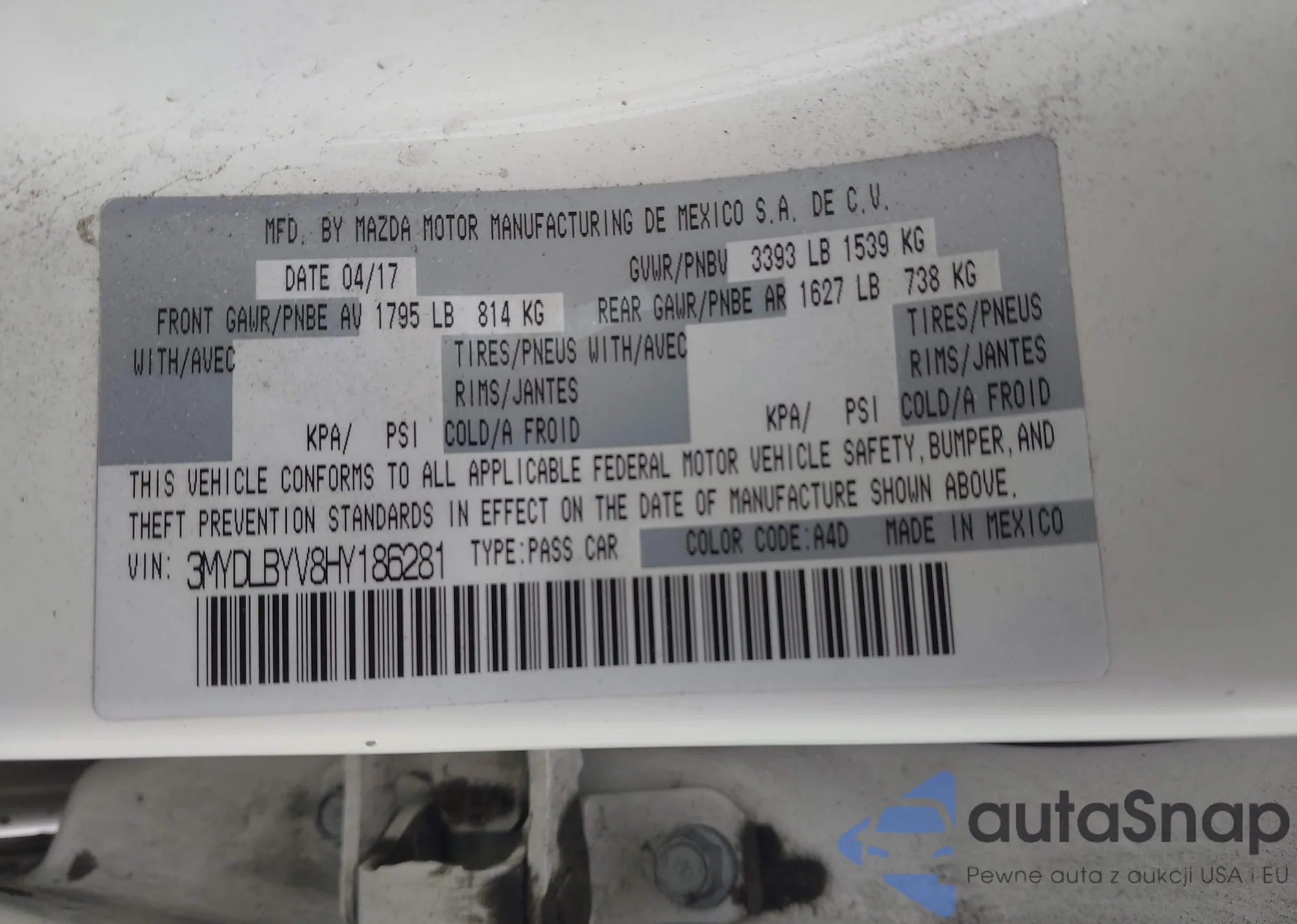 VIN: 3MYDLBYV8HY186281