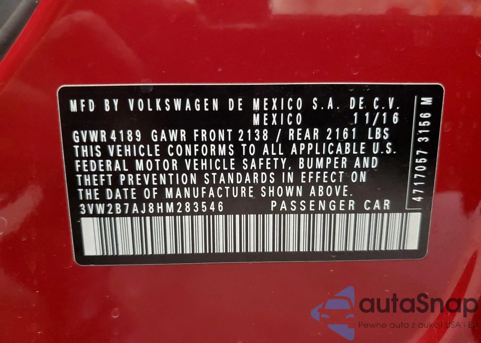 VIN: 3VW2B7AJ8HM283546