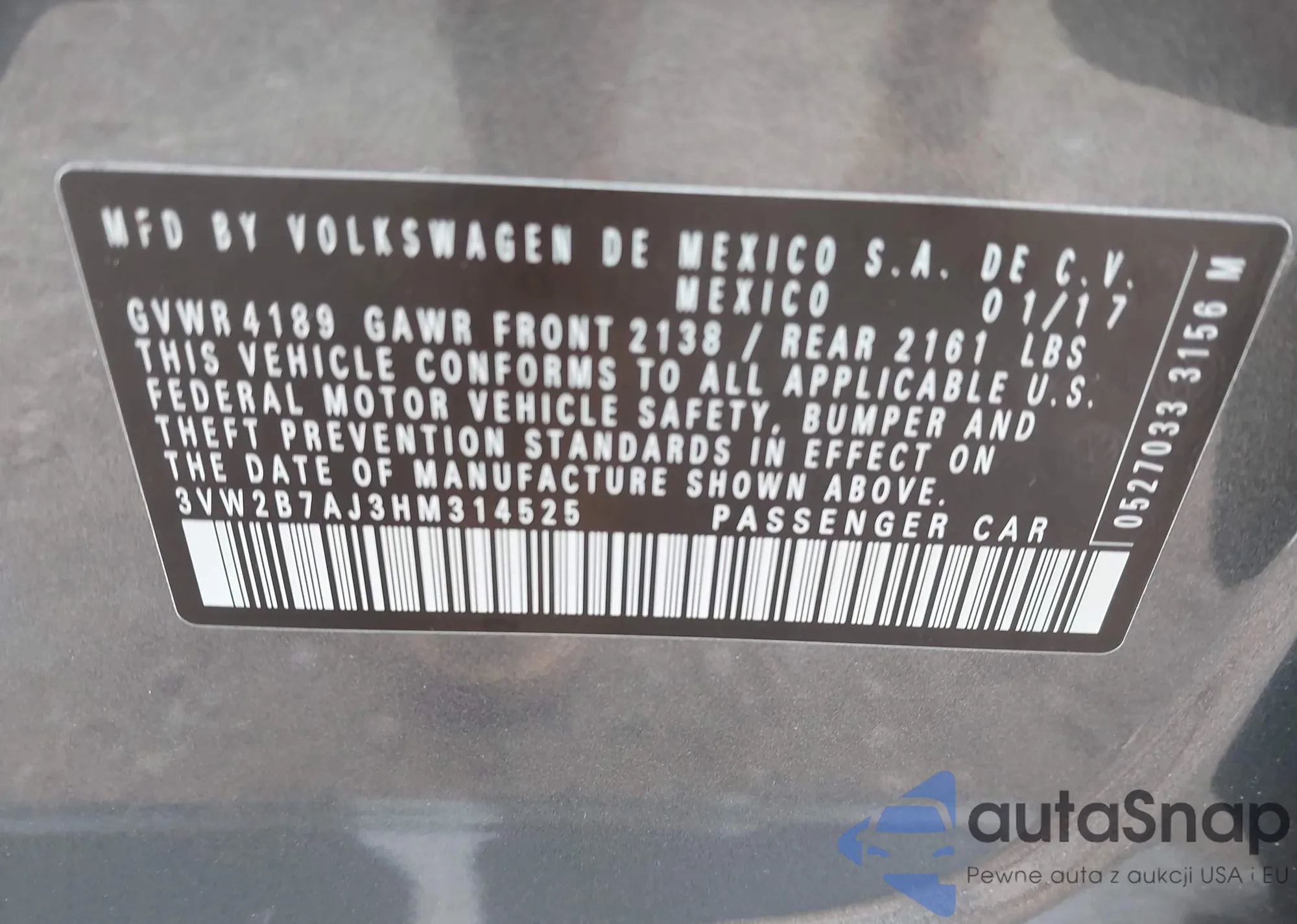 VIN: 3VW2B7AJ3HM314525