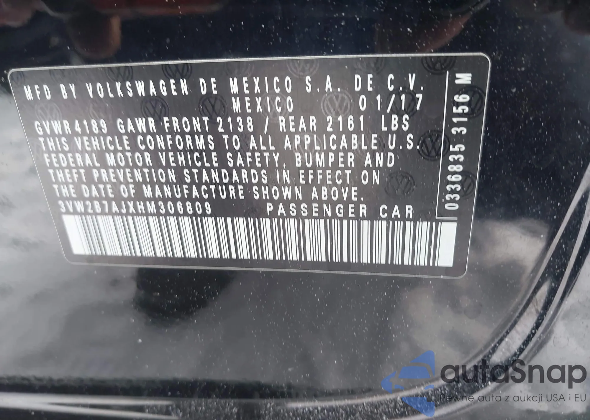 VIN: 3VW2B7AJXHM306809