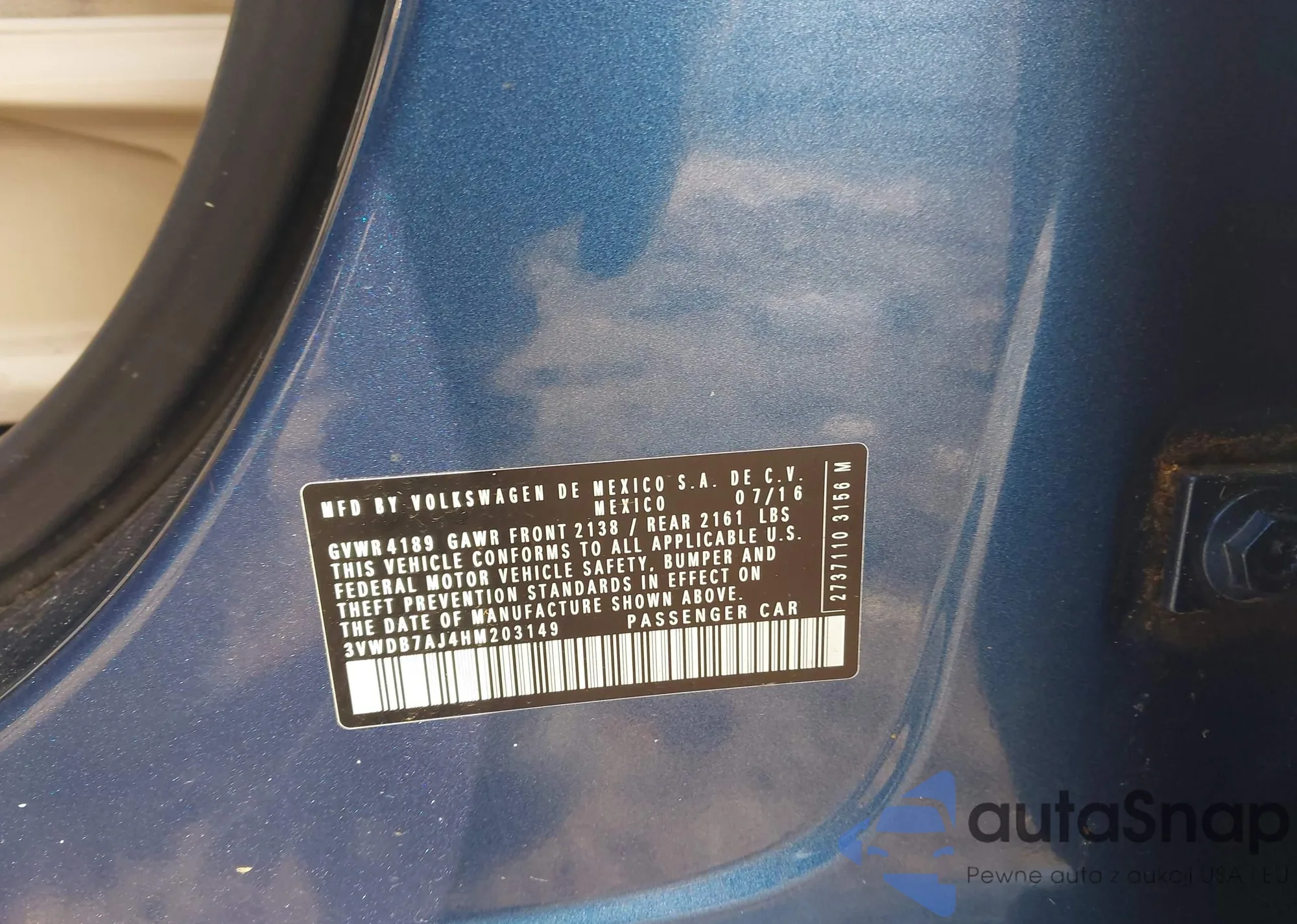 • VIN: 3VWDB7AJ4HM203149