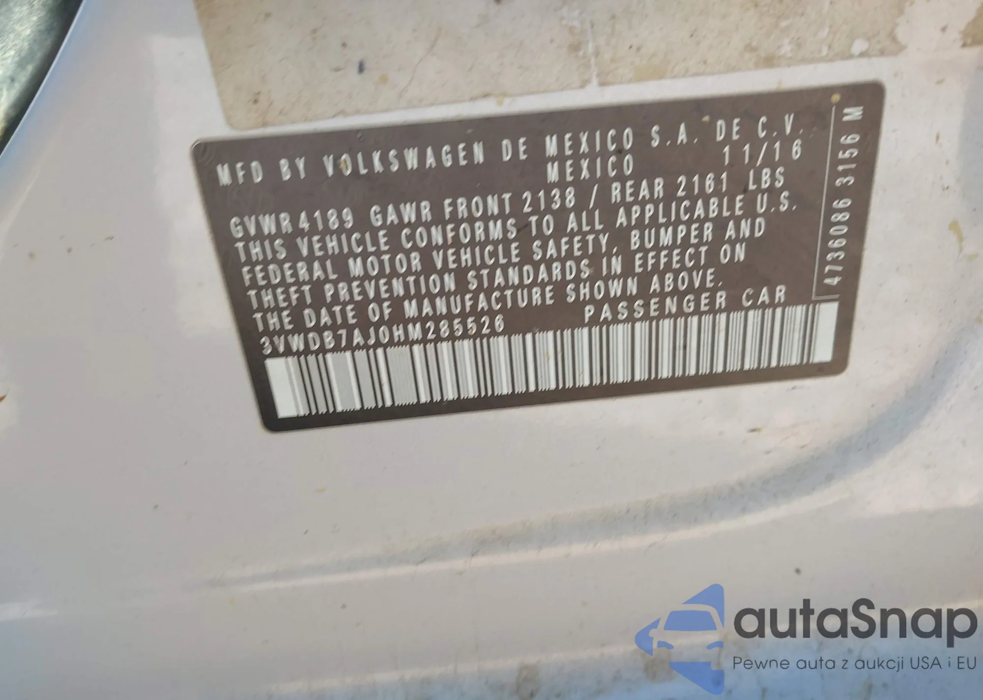 VIN: 3VWDB7AJ0HM285526