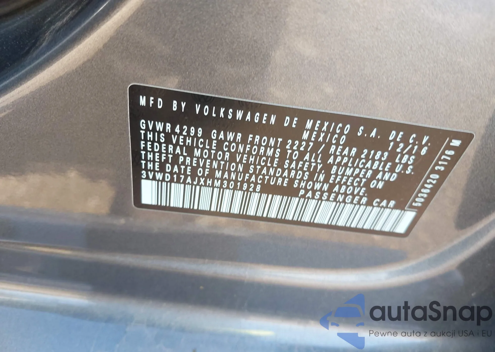 VIN: 3VWD17AJXHM301928