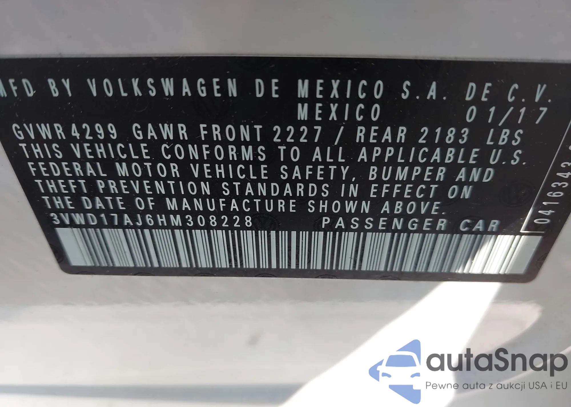 VIN: 3VWD17AJ6HM308228