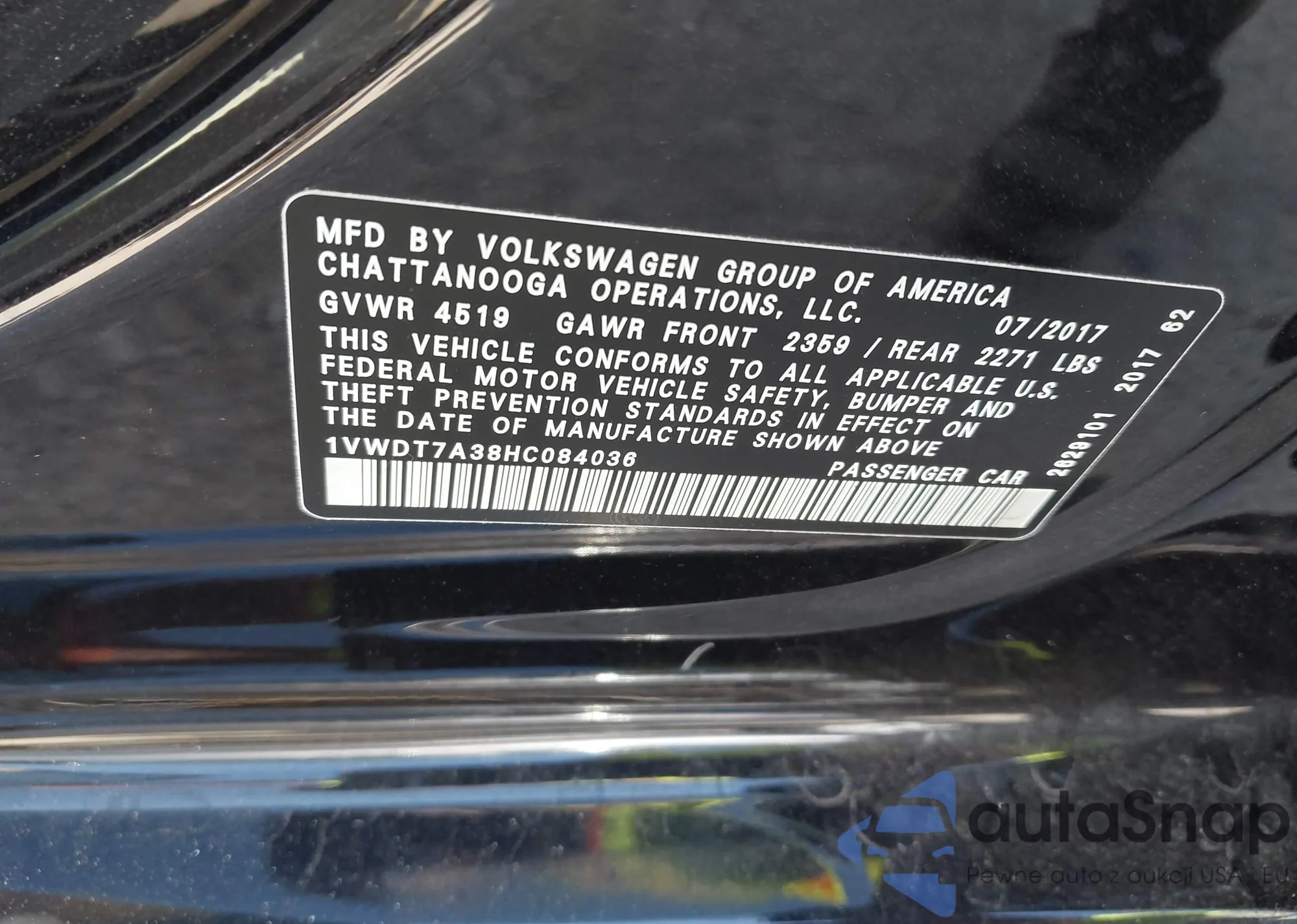 VIN: 1VWDT7A38HC084036
