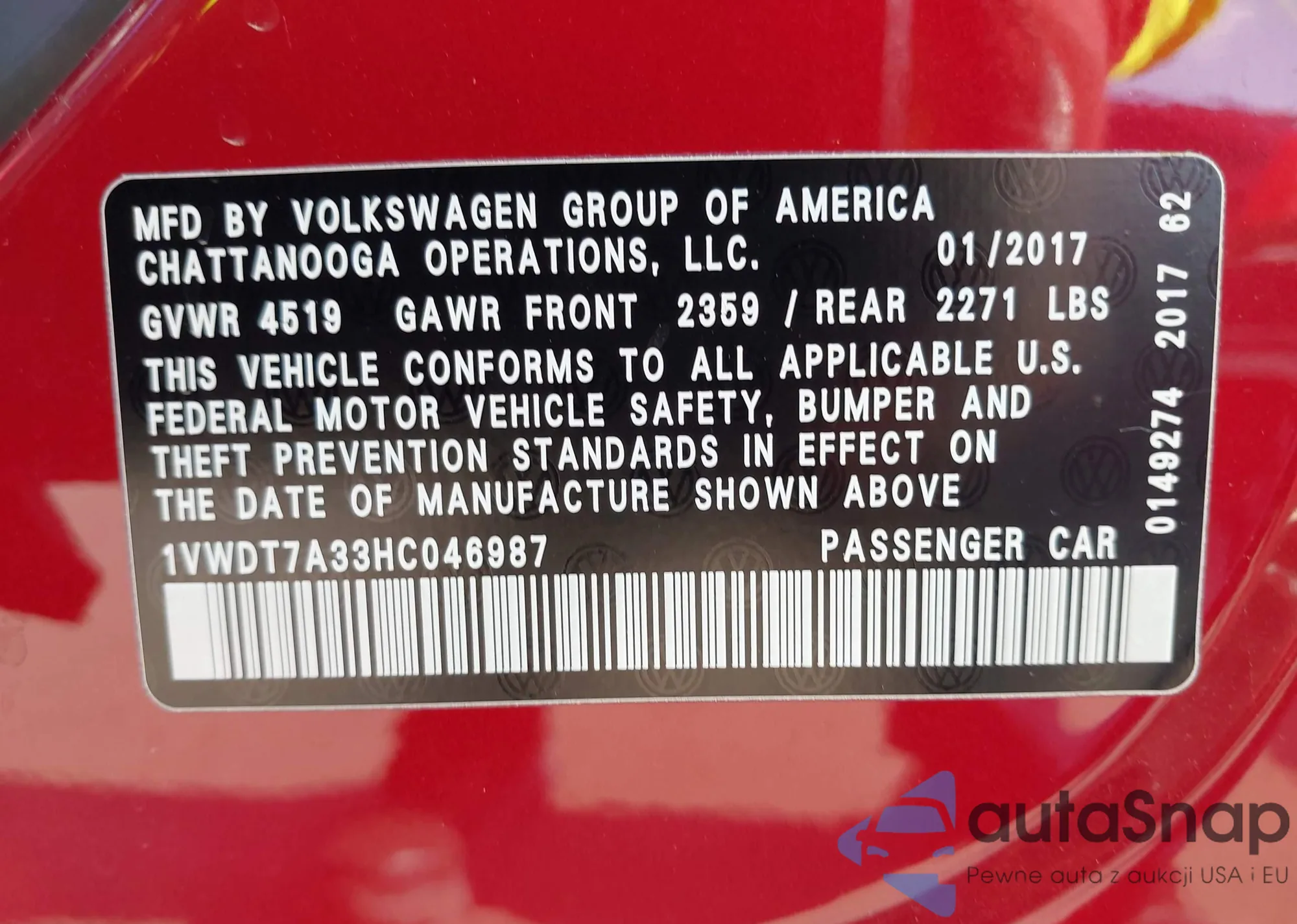 VIN: 1VWDT7A33HC046987