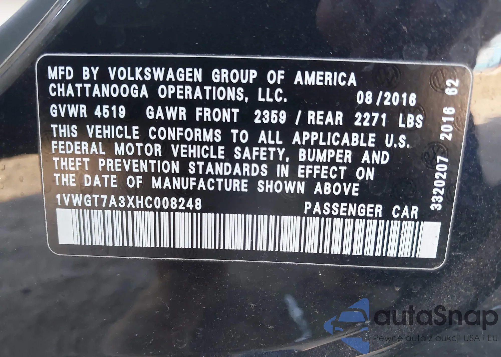 VIN: 1VWGT7A3XHC008248