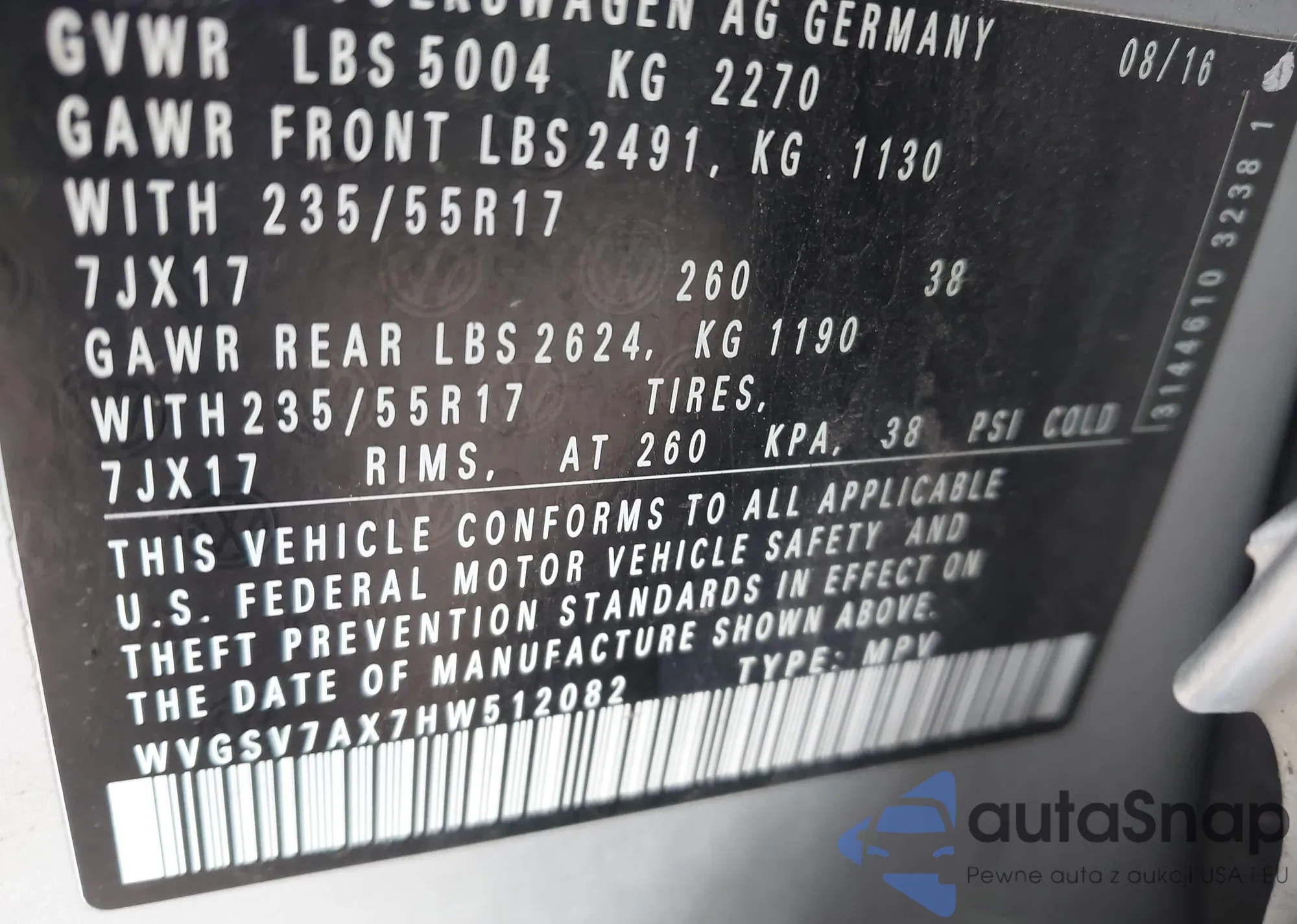 VIN: WVGSV7AX7HW512082