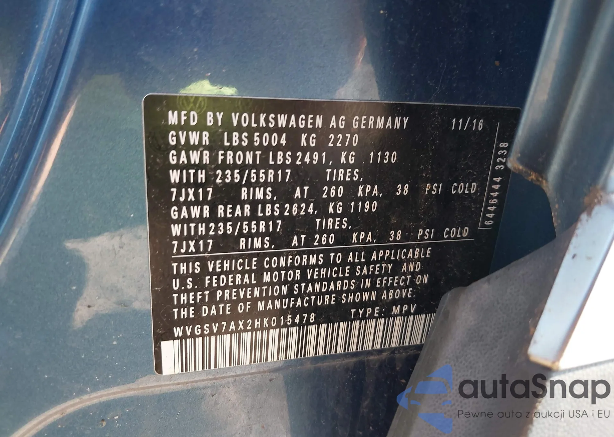 VIN: WVGSV7AX2HK015478