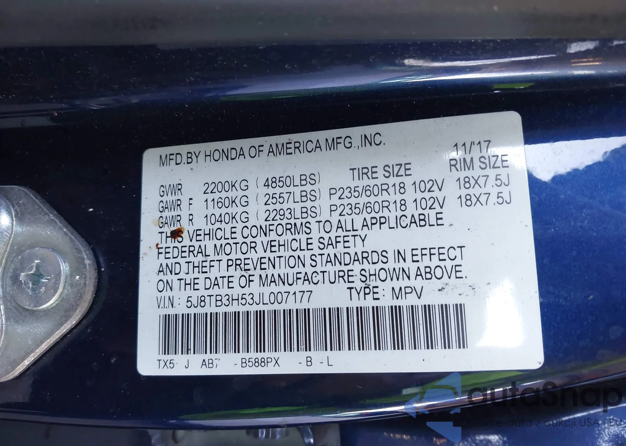 VIN: 5J8TB3H53JL007177