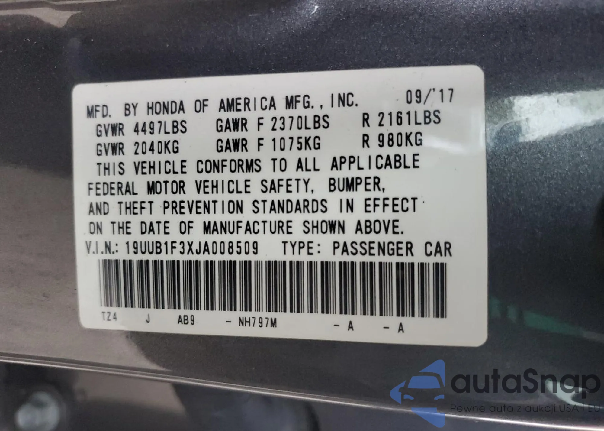 VIN: 19UUB1F3XJA008509