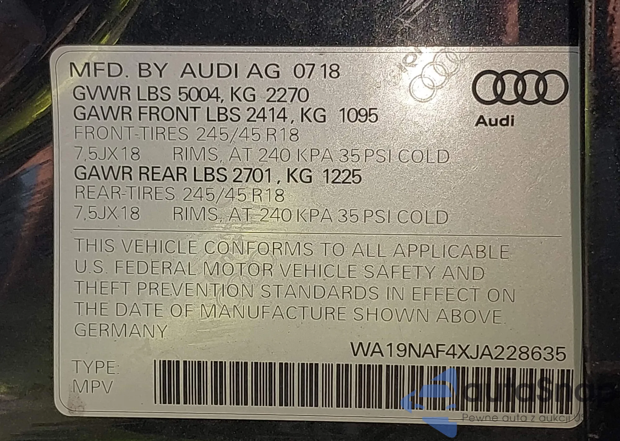 Samochód Audi A4 allroad 2018 (VIN WA19NAF4XJA228635) ma dokumenty uniemożliwiające rejestrację. Mogą pojawić się trudności przy eksporcie i rejestracji. Skontaktuj się z ekspertami AutaSnap w celu znalezienia alternatywy.
