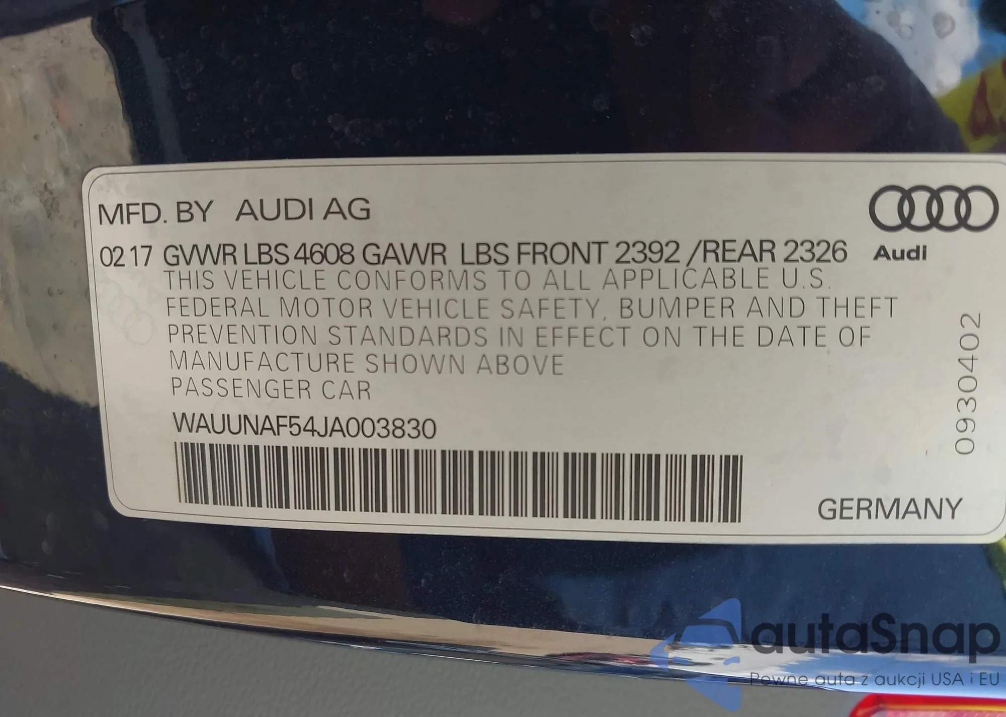 VIN: WAUUNAF54JA003830