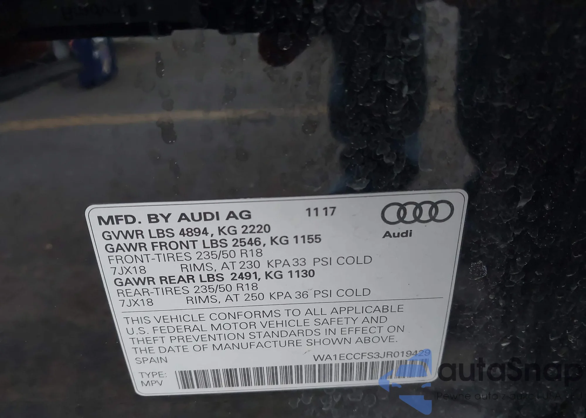 • VIN: WA1ECCFS3JR019429