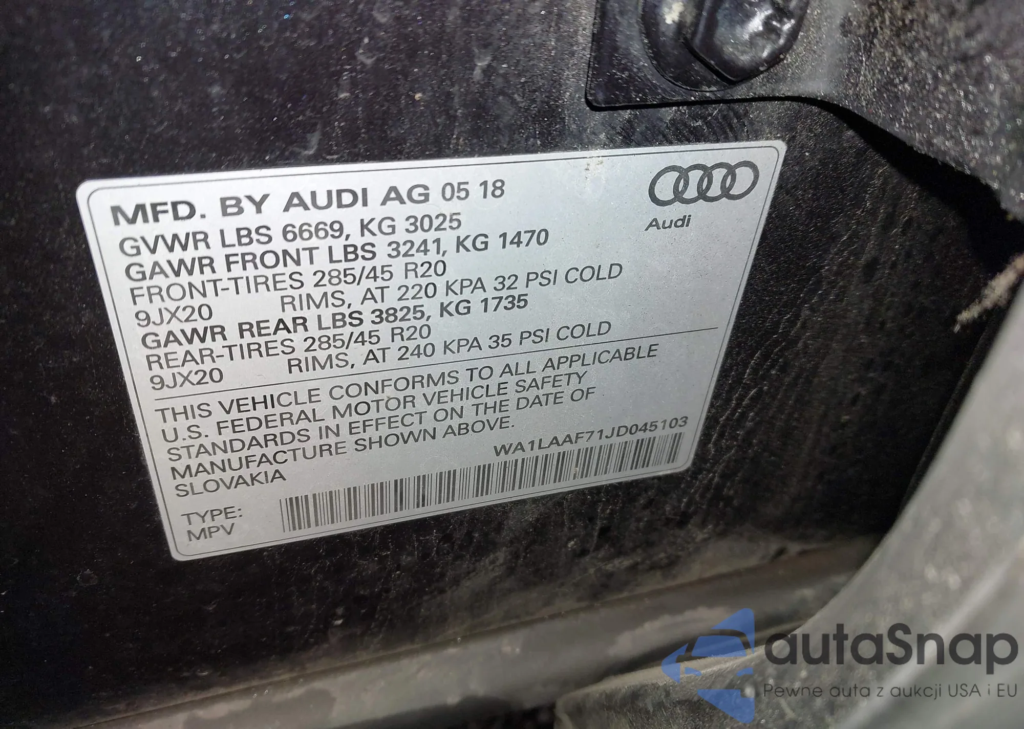Samochód Audi Q7 2018 (VIN WA1LAAF71JD045103) sprzedaje go niezweryfikowany sprzedawca. Zalecamy raport Carfax i potwierdzenie możliwości rejestracji pojazdu przed zakupem.