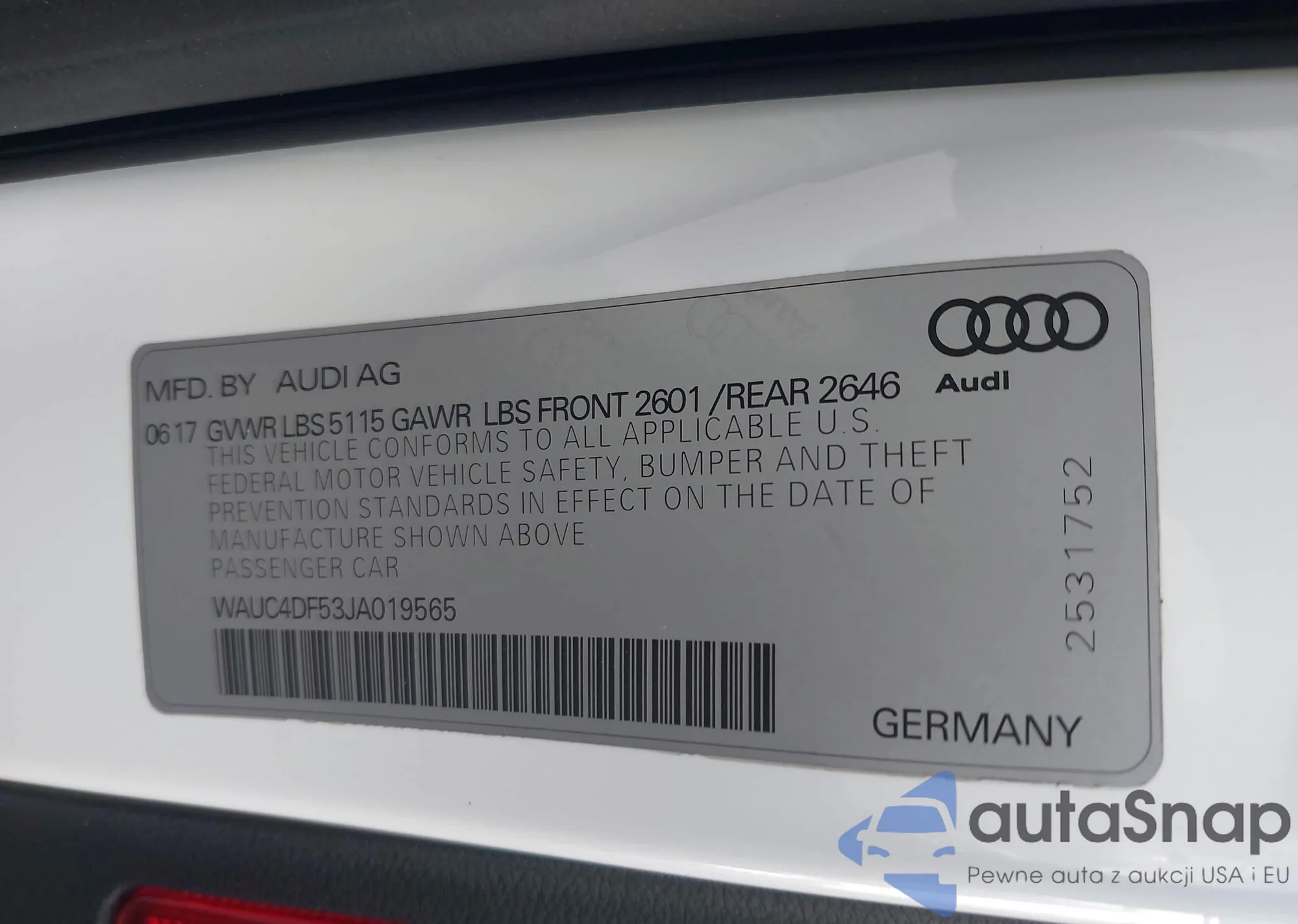 • VIN: WAUC4DF53JA019565