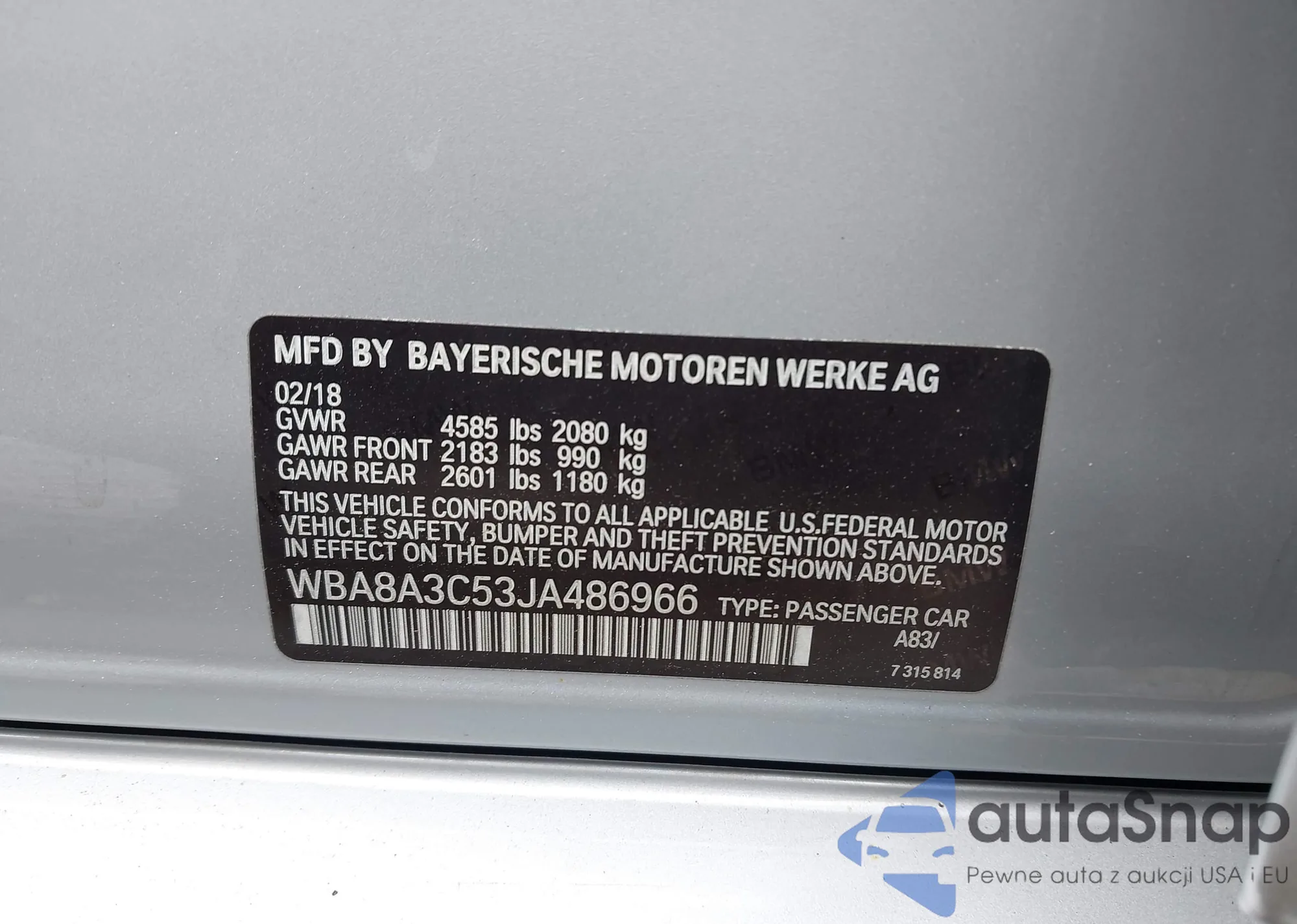 VIN: WBA8A3C53JA486966