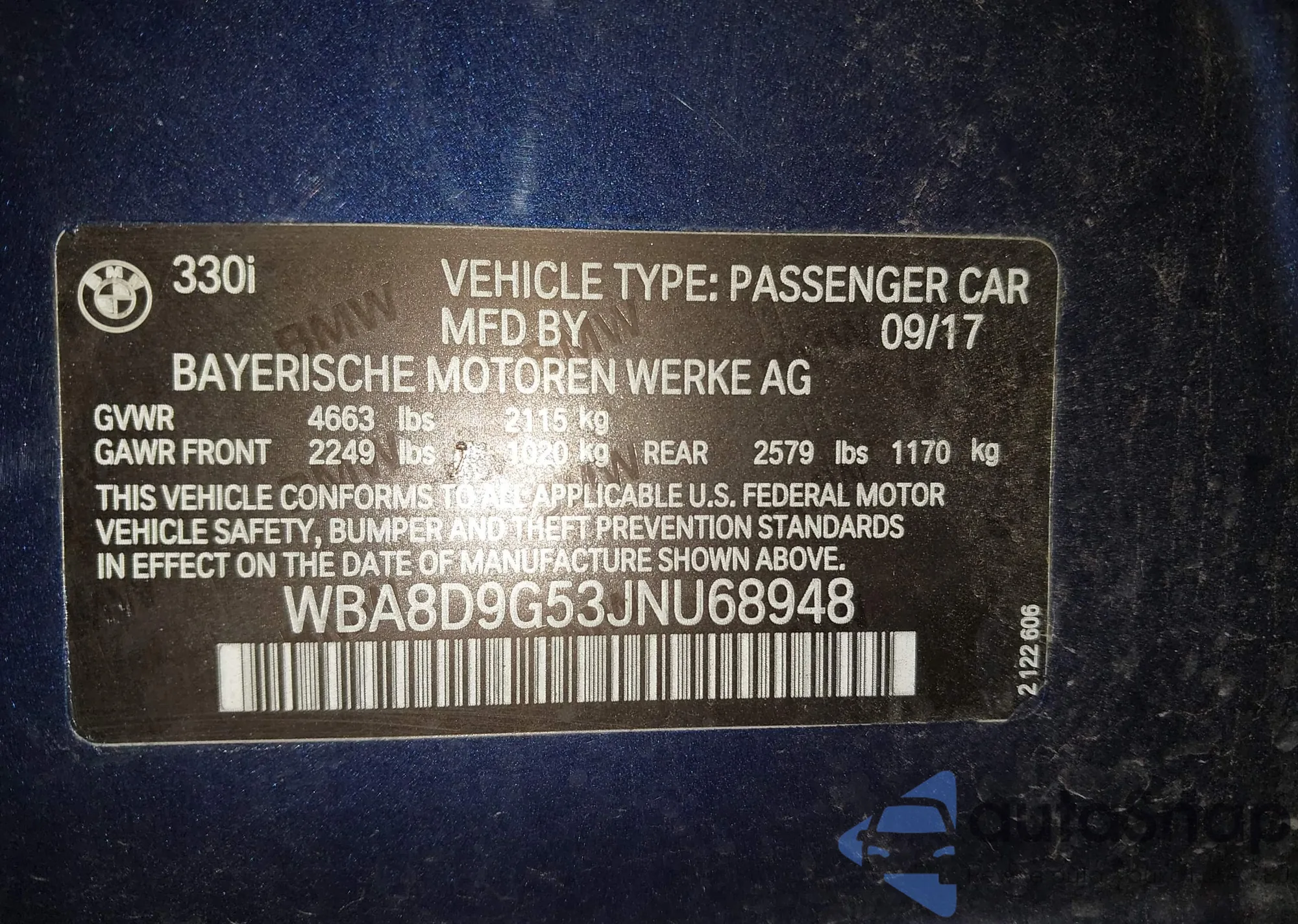 VIN: WBA8D9G53JNU68948