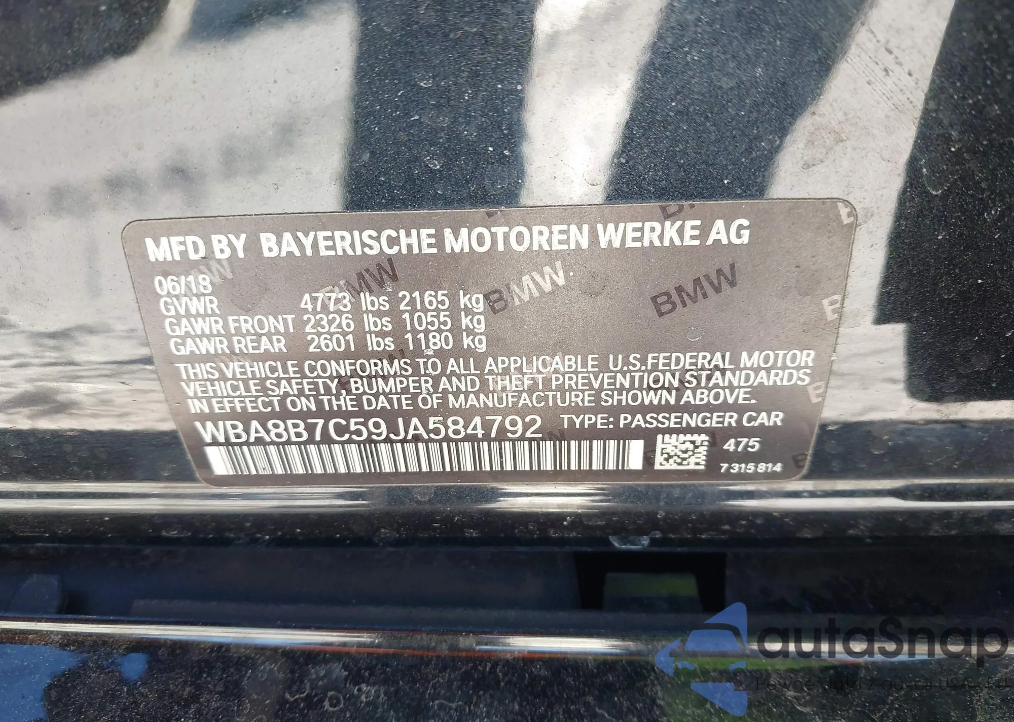 Samochód BMW 3er 2018 (VIN WBA8B7C59JA584792) nie był wcześniej licytowany. Dokumenty są czyste, przebieg odpowiada lub jest niższy niż średnia rynku. Sprzedaje go firma ubezpieczeniowa – polecamy zakup. Dostawa do portu zajmie ok. 6–8 tygodni.