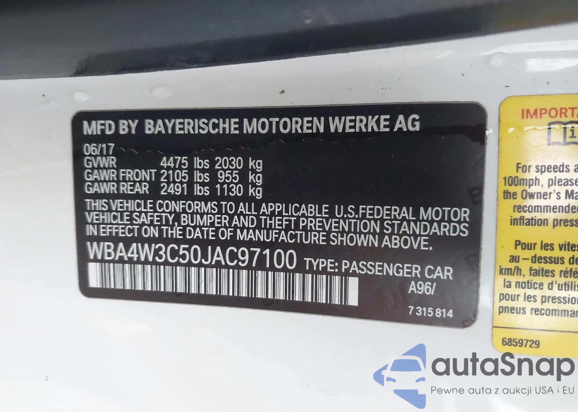 • VIN: WBA4W3C50JAC97100