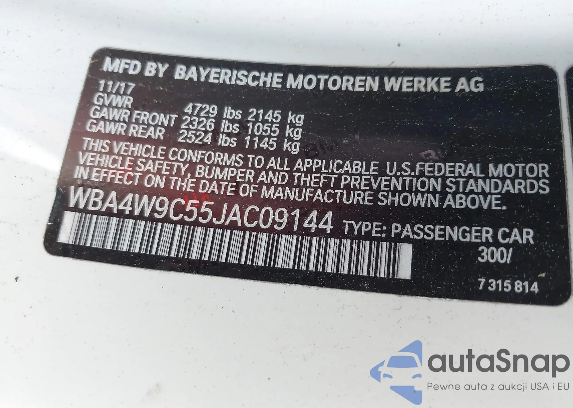 VIN: WBA4W9C55JAC09144
