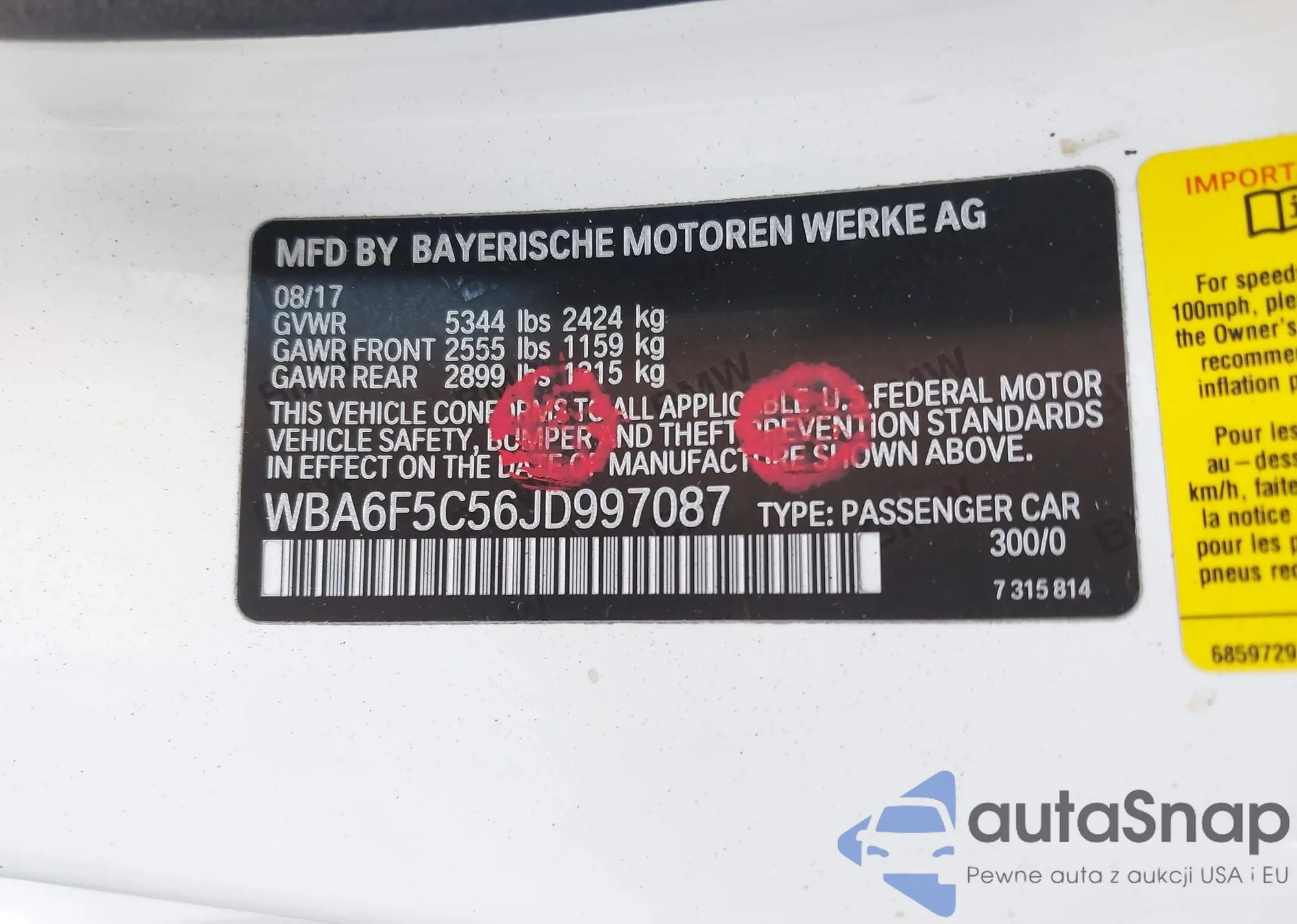 • VIN: WBA6F5C56JD997087
