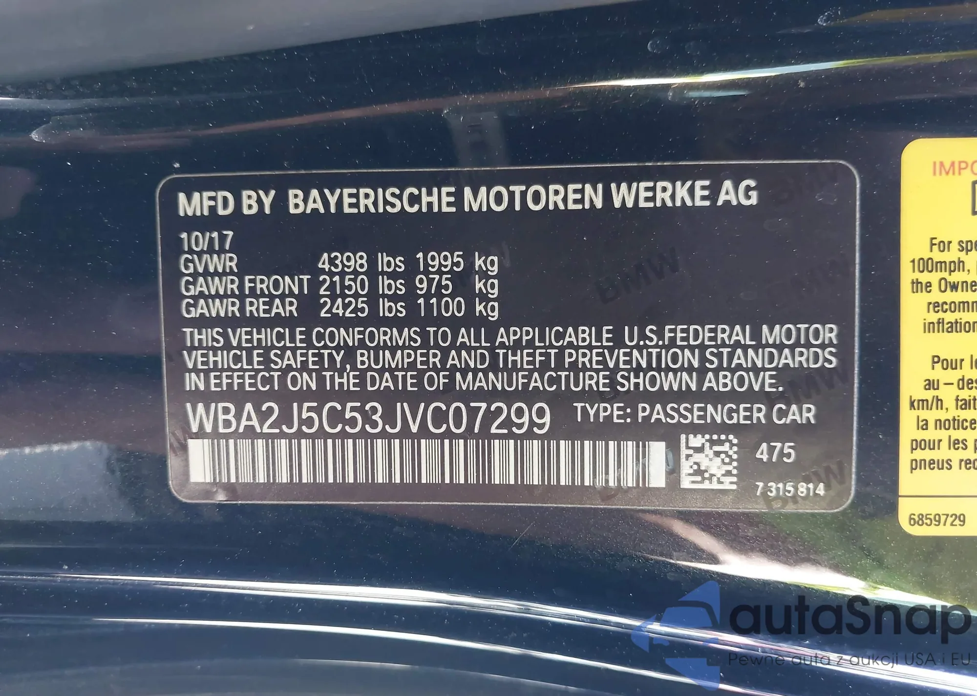 VIN: WBA2J5C53JVC07299