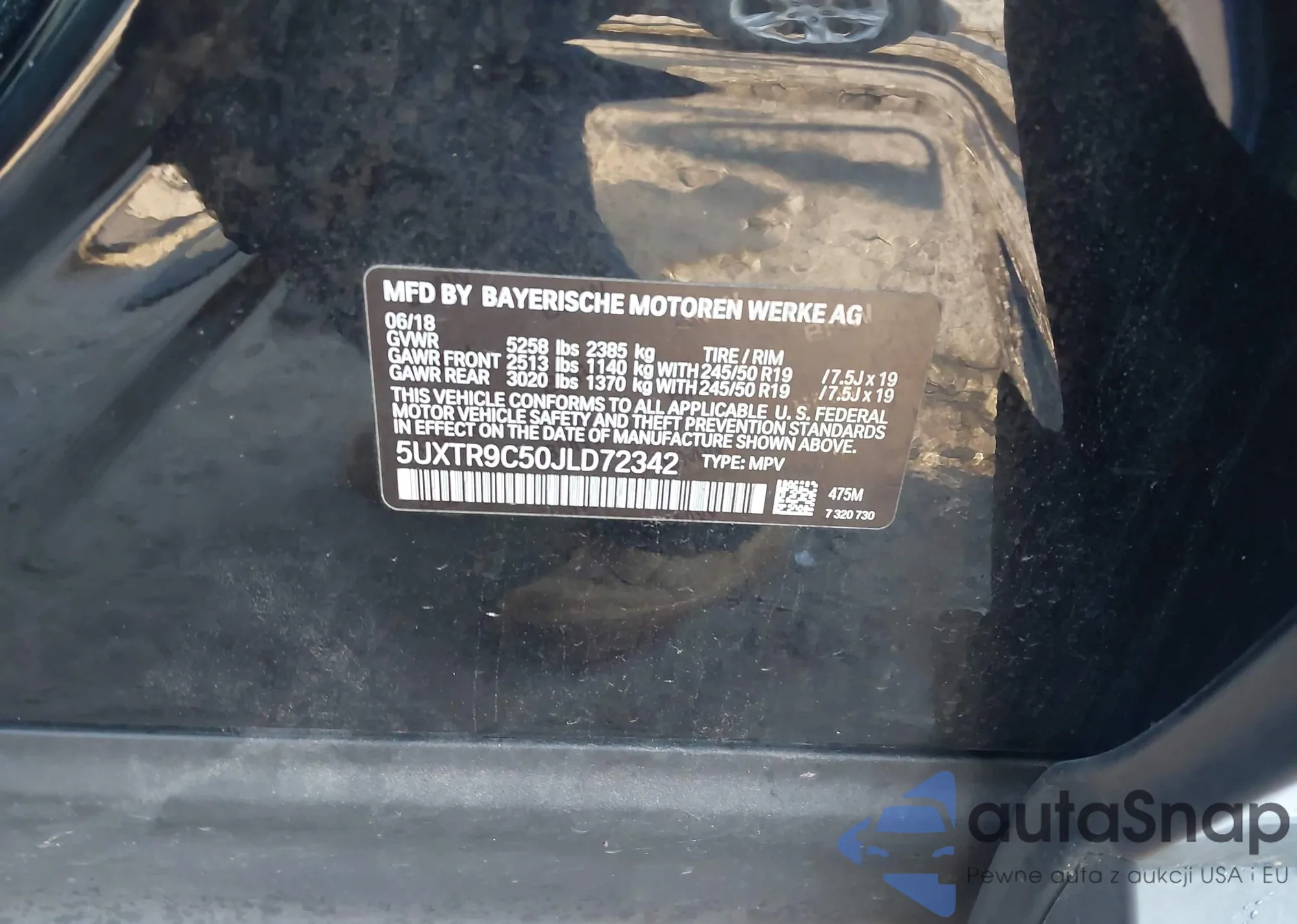 Samochód BMW X3 2018 (VIN 5UXTR9C50JLD72342) nie był wcześniej licytowany. Dokumenty są czyste, przebieg odpowiada lub jest niższy niż średnia rynku. Sprzedaje go firma ubezpieczeniowa – polecamy zakup. Dostawa do portu zajmie ok. 6–8 tygodni.
